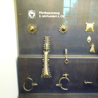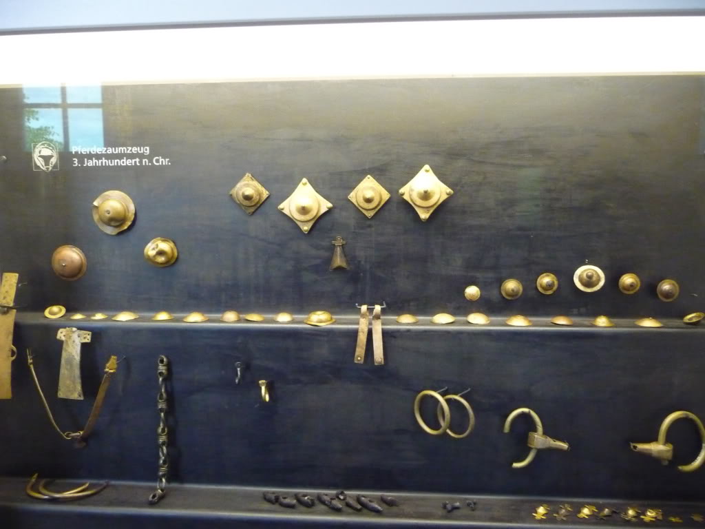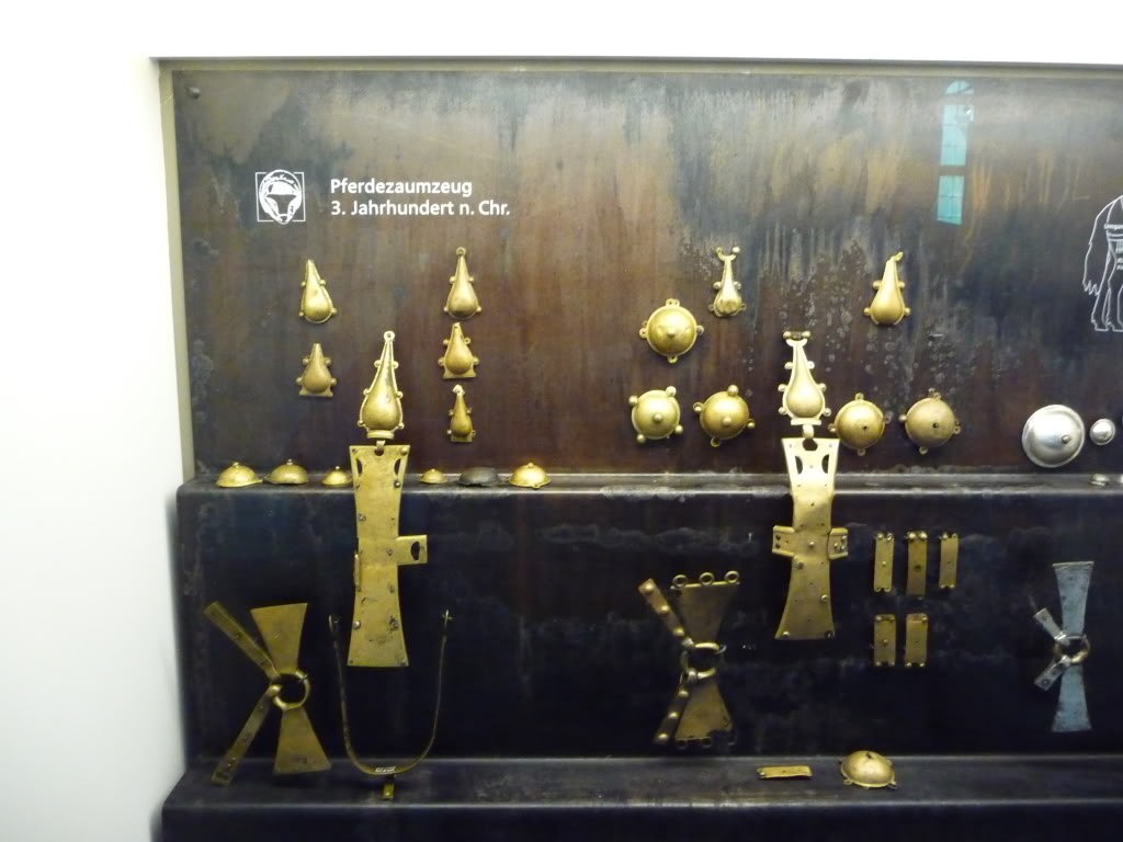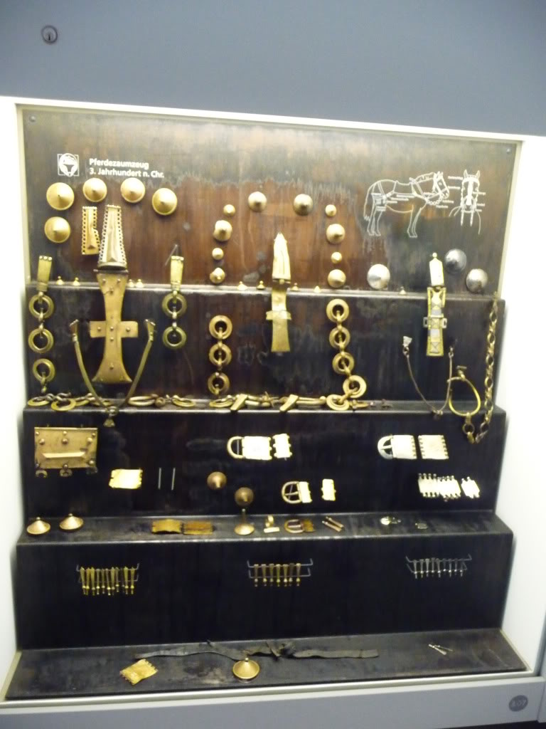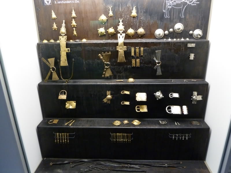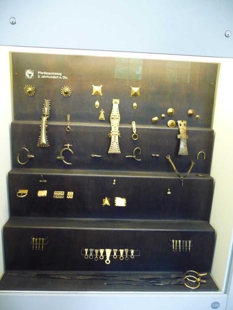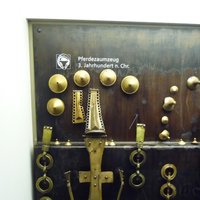 Металические детали снаряжения и украшения верхового коня III век н. э.      Металические детали снаряжения верхового коня периода Великого Переселения Народов      Металические детали снаряжения и украшения верхового коня III век н. э.