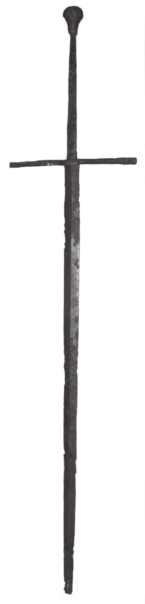 У статті автори вводять в науковий обіг досить рідкісну для регіону знахідку, а саме головку бронзового наверіия руків’я середньовічного меча, яке було виявлене на Чорнівському городищі першої половини XIII ст. у 2012 р. Авторами стверджується, що головка наверіия меча має бшітське походження. Виявлена знахідка дозволяє прослідкувати та детальніше дослідити військову справу місцевого населення, зокрема простежити взаємовідносини військового контингенту Чорнівського городища із суміжними територіями Русі та Європи у XIII ст.