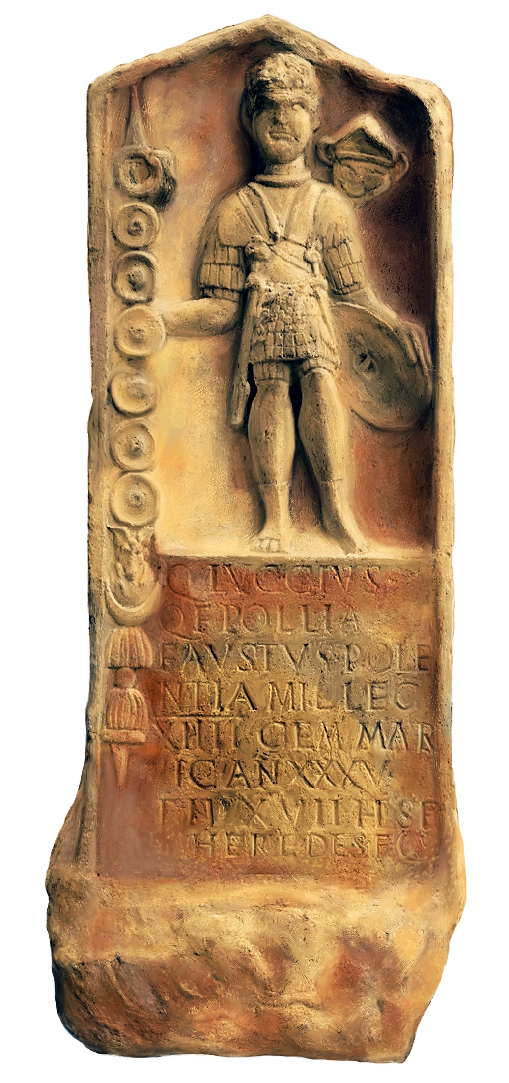 Надгробие сигнифера Квинта Лукция Фавста из XV Первородной Фортуны (Primigenia) легиона.