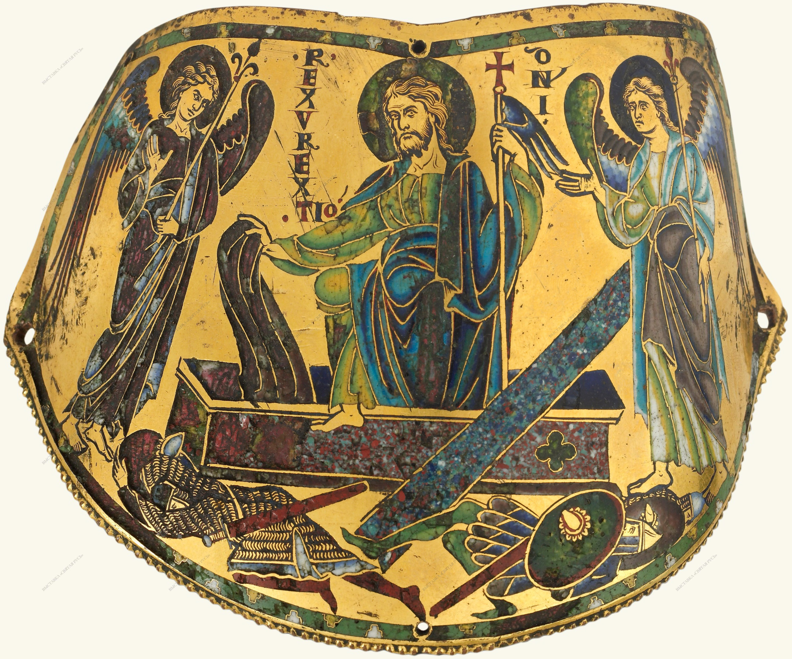 Мозельская школа Золоченая медь; выемчатая эмаль, перегородчатая эмаль 11, 8 x 14,7 Подарен Обществом Лувру в 1934 году Надпись: REXVREXTIO / DNI В XVII веке находился в Успенском соборе во Владимире. В 1919 году поступил во Владимирский музей, в 1933 – продан за границу и приобретен Обществом друзей Лувра в Париже у антиквара Н. Бримо Музей Лувра инв. ОА 8261