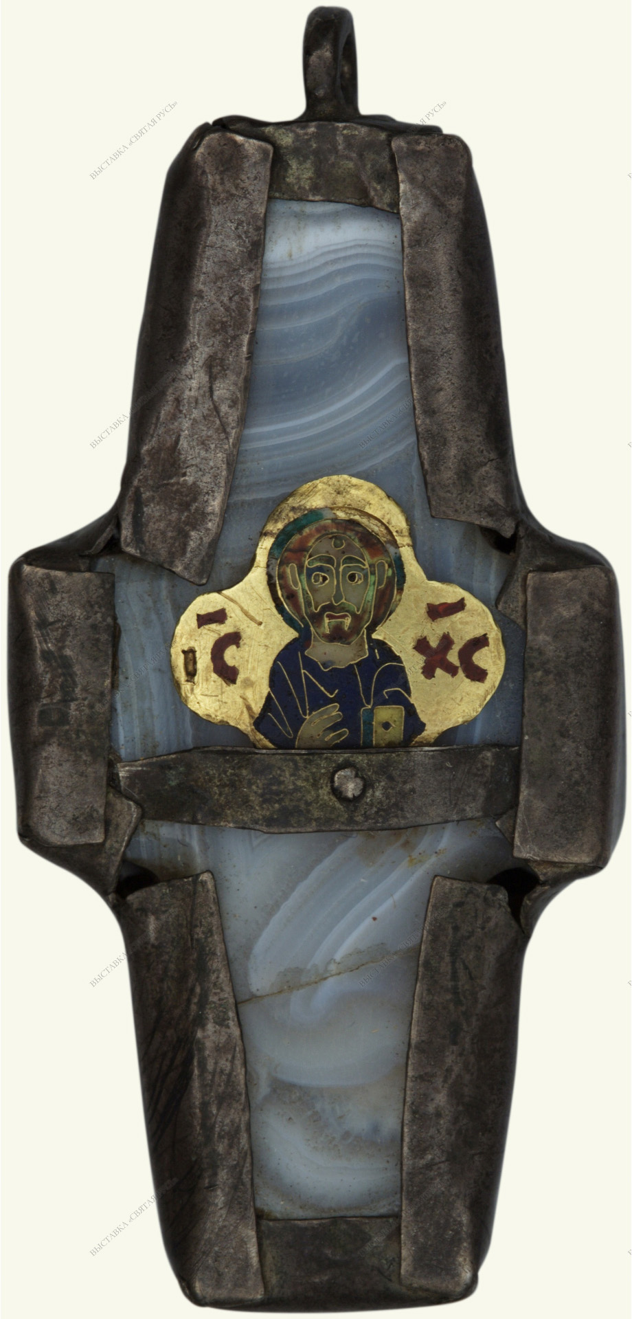 Золото, серебро, агат; резьба, ковка, перегородчатая эмаль Дробница – 1,7 x 1,7; крест – 6,3 x 3 Поступил в 1933 году из собрания графа А.С. Уварова ГИМ инв. 75042, ОК 9309