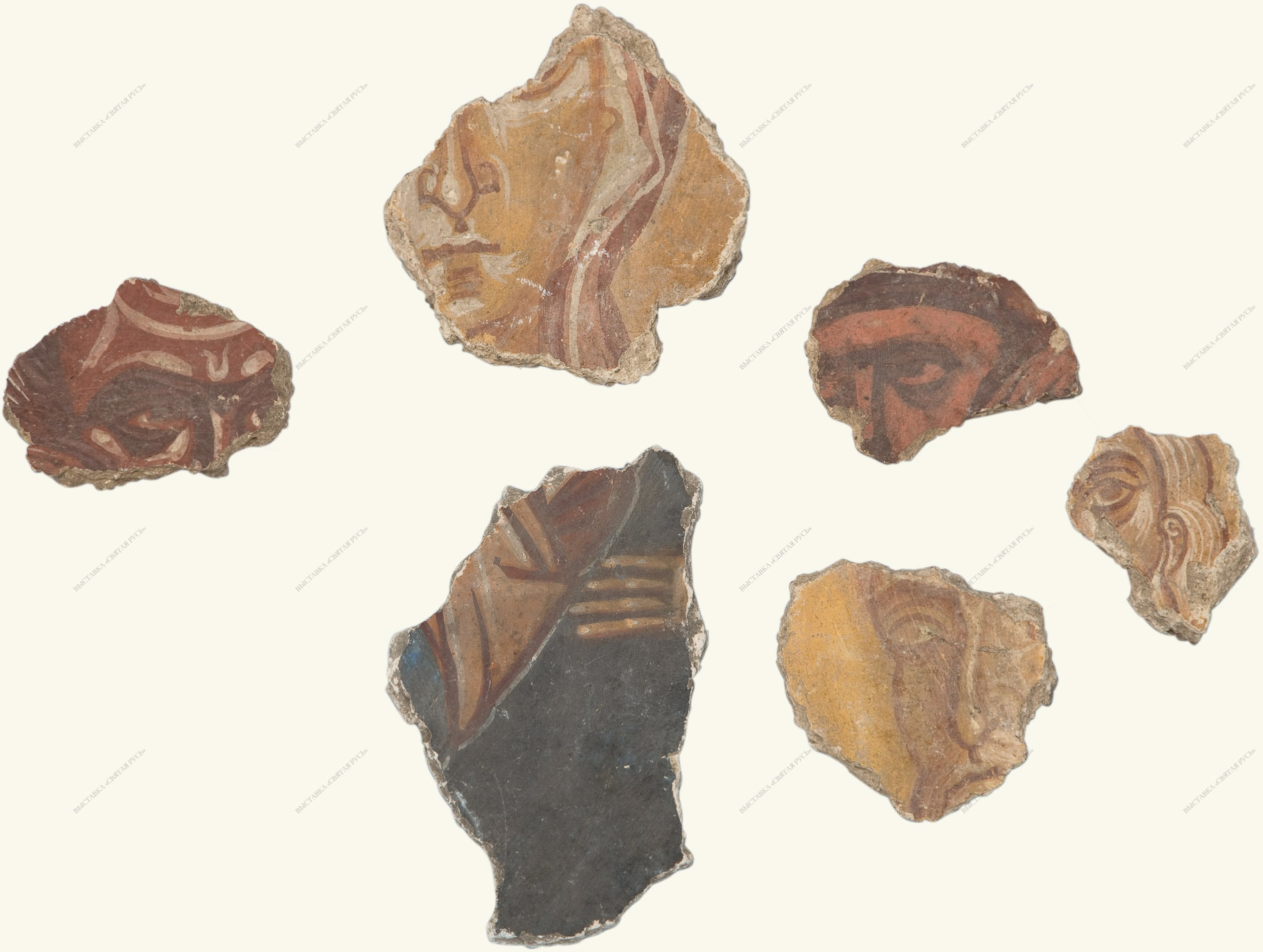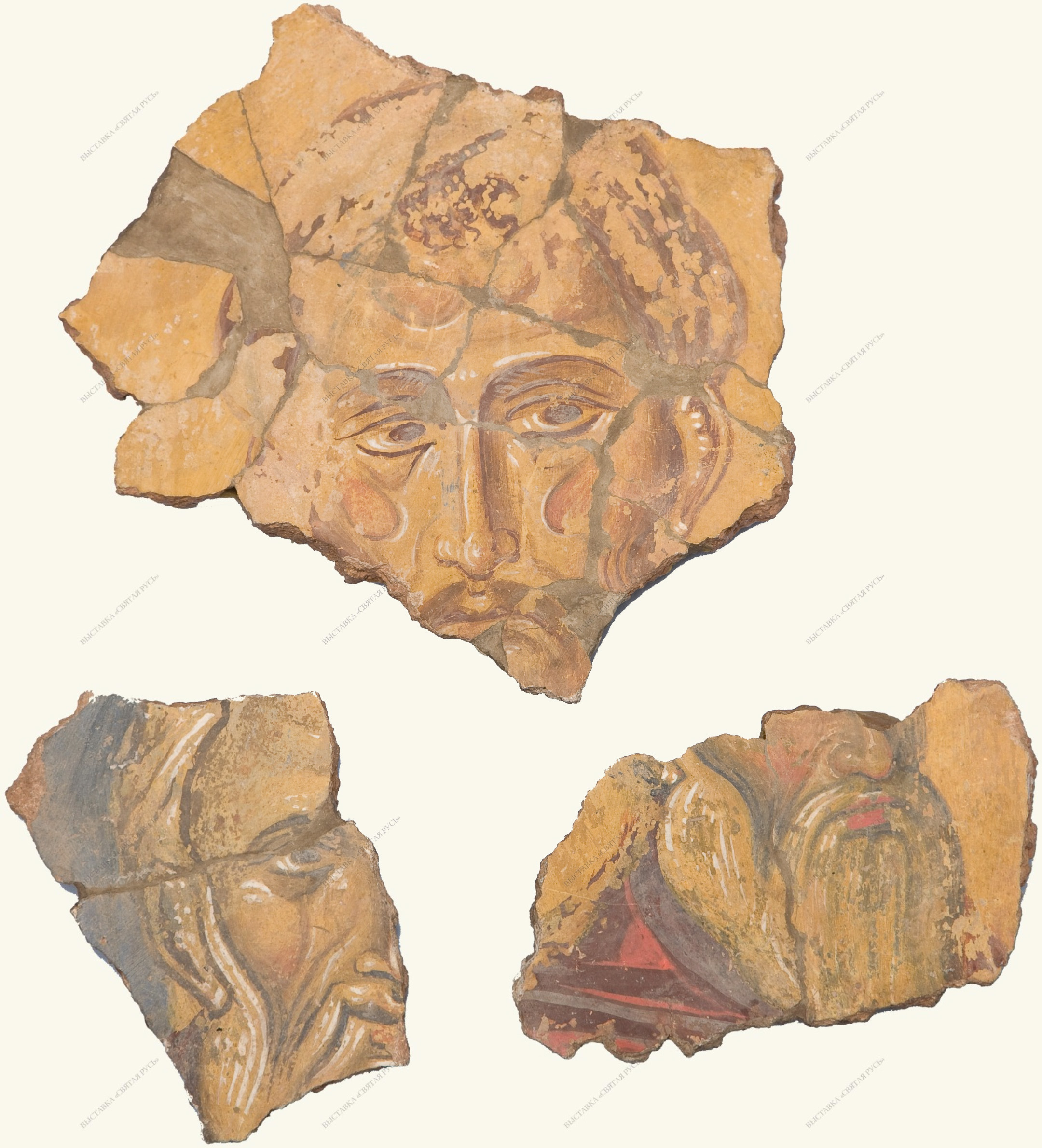 Старая Ладога Фреска. 9,5 x 8,6; 11 x 13,5; 7 x 9,1; 7,5 x 9,7; 16 x 11,3 Поступили в 1949 году из ГРМ ГЭ инв. СЛ. 2–6