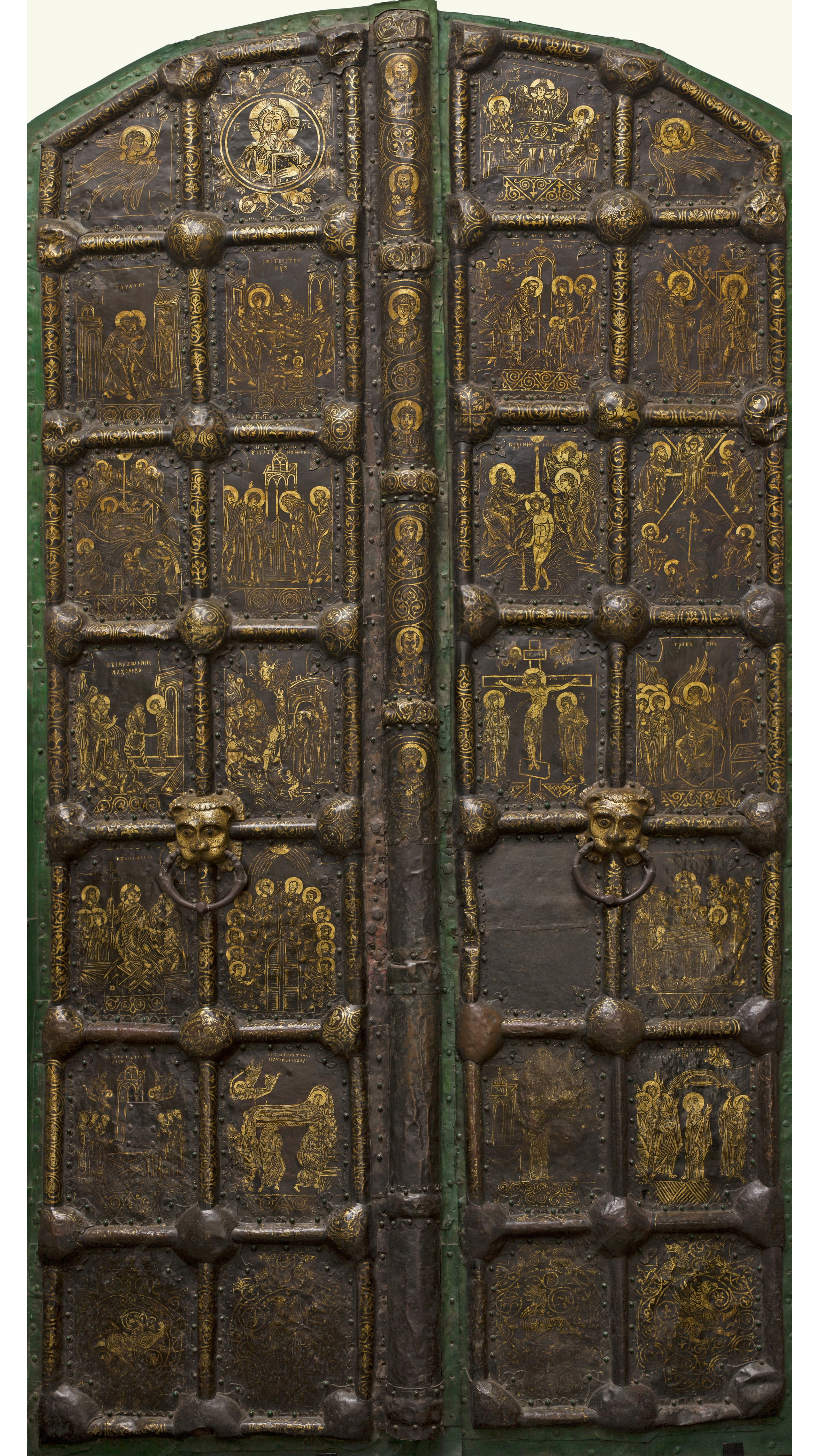 Суздаль Железо, медь, золото; огневое золочение 375,7 x 119,5 x 16 Происходят из суздальского Богородице-Рождественского собора ВСМЗ инв. В-6300/1169-1, В-6300/1169-2; М-1, М-2