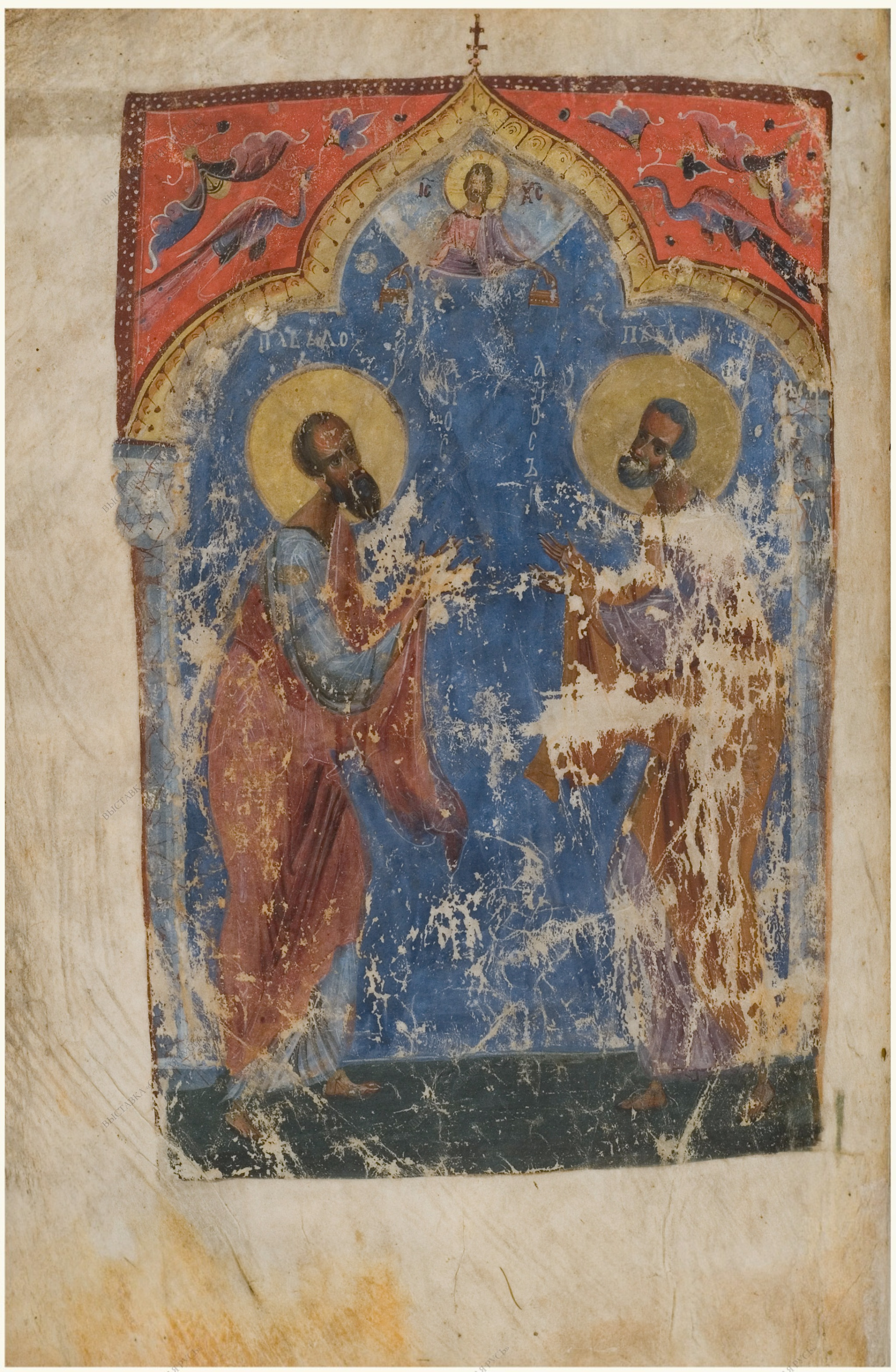Ростов Великий 241 л. Пергамент; чернила, киноварь, темпера; переплет XVIII века – картон, кожа 45 x 33 x 9,5 Поступил в 1920 году в составе Синодальной патриаршей библиотеки На л. 241 об. запись писца (с большими утратами): В лето 6728 <1220> месяца августа почати быша писати книги сия при (князи) Василка Костя..., а внуце (Всеволожи), а кончаны быша месяца октября в 22 день на память святаго Аверкия епископа... помози пише... Василку... Кюрила избави В 1661 году был вложен патриархом Никоном в Ново-Иерусалимский монастырь, а в 1675 – передан в патриаршую «ризную» казну Реставрирован в 1990–1993 годах в ВХНРЦ им. И.Э. Грабаря Г.З. Быковой, И.П. Мокрецовой, Н.Л. Петровой, М.А. Волчковой, И.С. Стадниченко ГИМ инв. 80370, ОР Син. 7