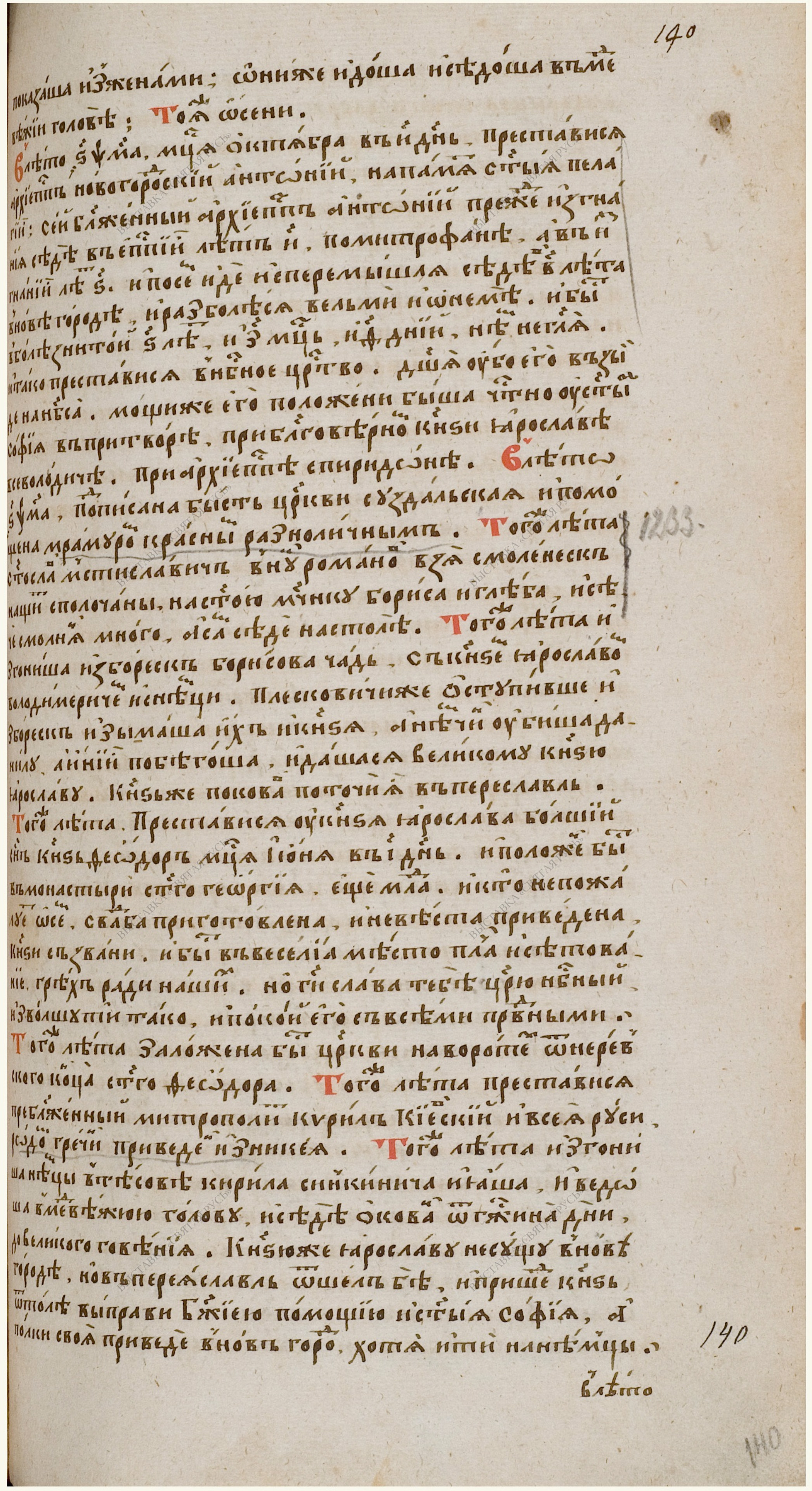 Конец XV века 251 л. Бумага, чернила, киноварь, темпера 31,5 x 21 Поступила в 1761 году С середины XVII века собственность князей Радзивиллов. Богуславом Радзивиллом была завещана Кенигсбергской библиотеке, куда поступила в 1671 году. В 1758 году по специальному ходатайству Императорской академии наук и за подписью императрицы Елизаветы Петровны летопись была прислана из Кенигсберга в Санкт-Петербург БРАН инв. ОС 34.5.30