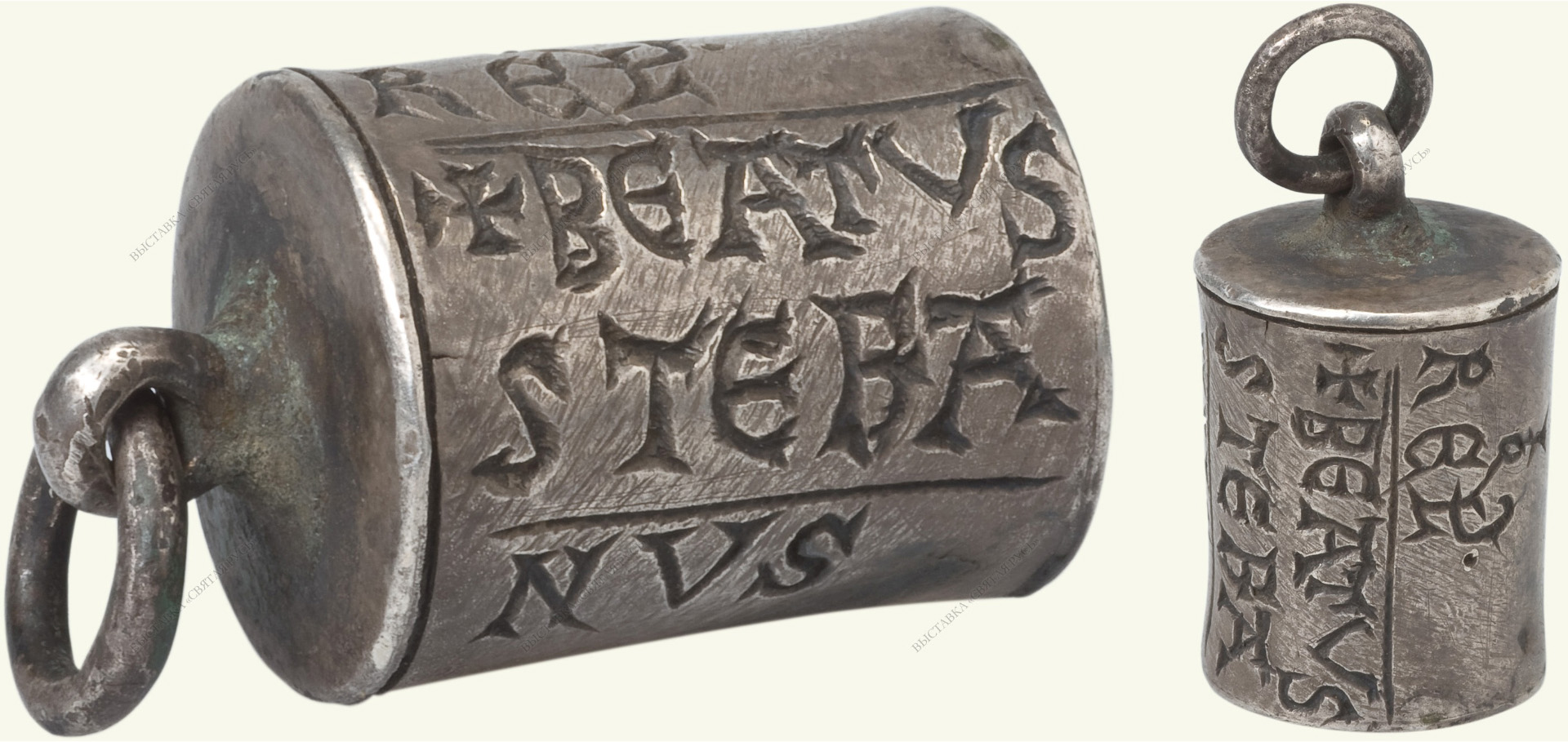 Германия Серебро; гравировка 1,5 x 1,9 Поступил в 1983 году Гравированная надпись в две строки: Beatus Stefanus Происходит из раскопок древнерусского города Изяславля (Волынское княжество, территория современной Западной Украины). Найден в 1958 году Волынской экспедицией Ленинградского отделения Института археологии АН СССР ГЭ инв. ЭРА-34/293