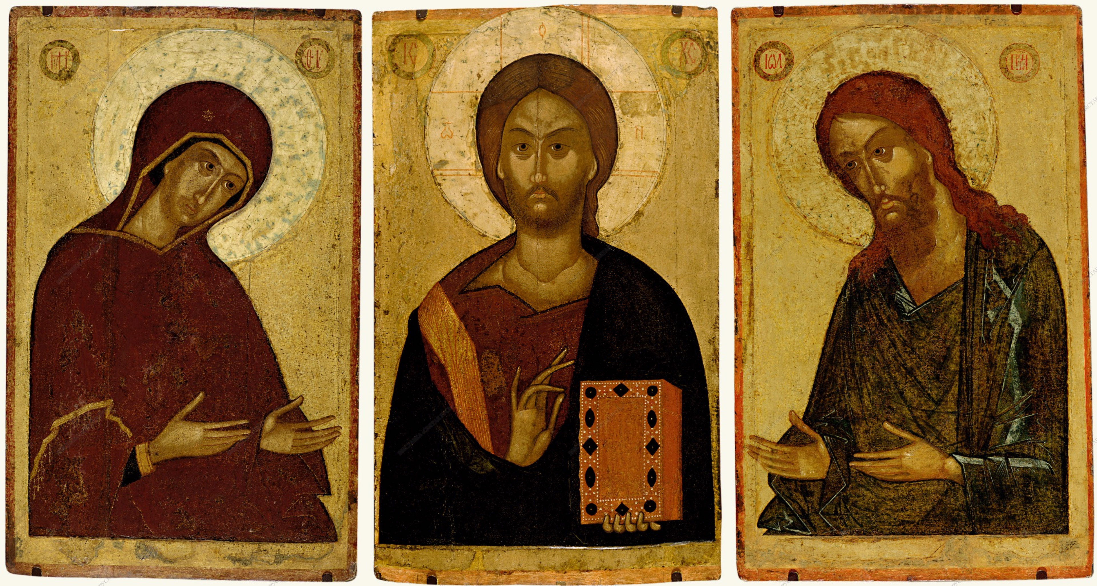 Псков Дерево; темпера БОГОМАТЕРЬ 110 x 68, СПАС ВСЕДЕРЖИТЕЛЬ 110 x 67, ИОАНН ПРЕДТЕЧА 110 ? 68 Поступил в 1930 году из ГИМ Происхождение неизвестно Реставрация домузейная ГТГ инв. 12856, 12857, 12855 Ссылки:Вернуться назад |