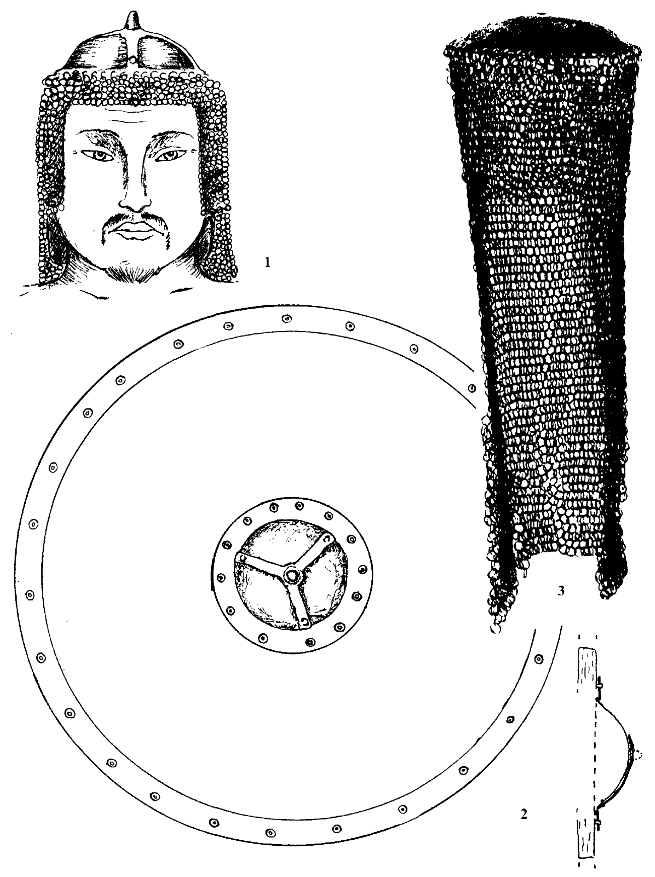 Сидорово. 1-2 — возможные варианты использования железной бляхи из хоз. ямы 9; 3 - татарский шлем XVII в.