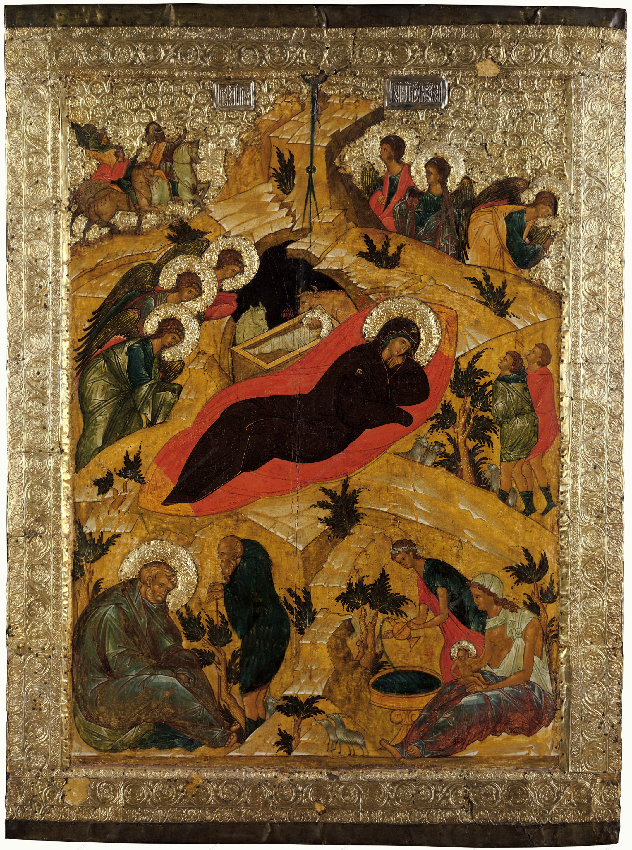 Около 1497 года. Серебряные басменные оклады датируются 1542–1543 годами и сделаны на вклад архиепископа ростовского и ярославского Досифея, игумена Успенского монастыря (1533–1539). Происходят из Успенского собора Кирилло-Белозерского монастыря.