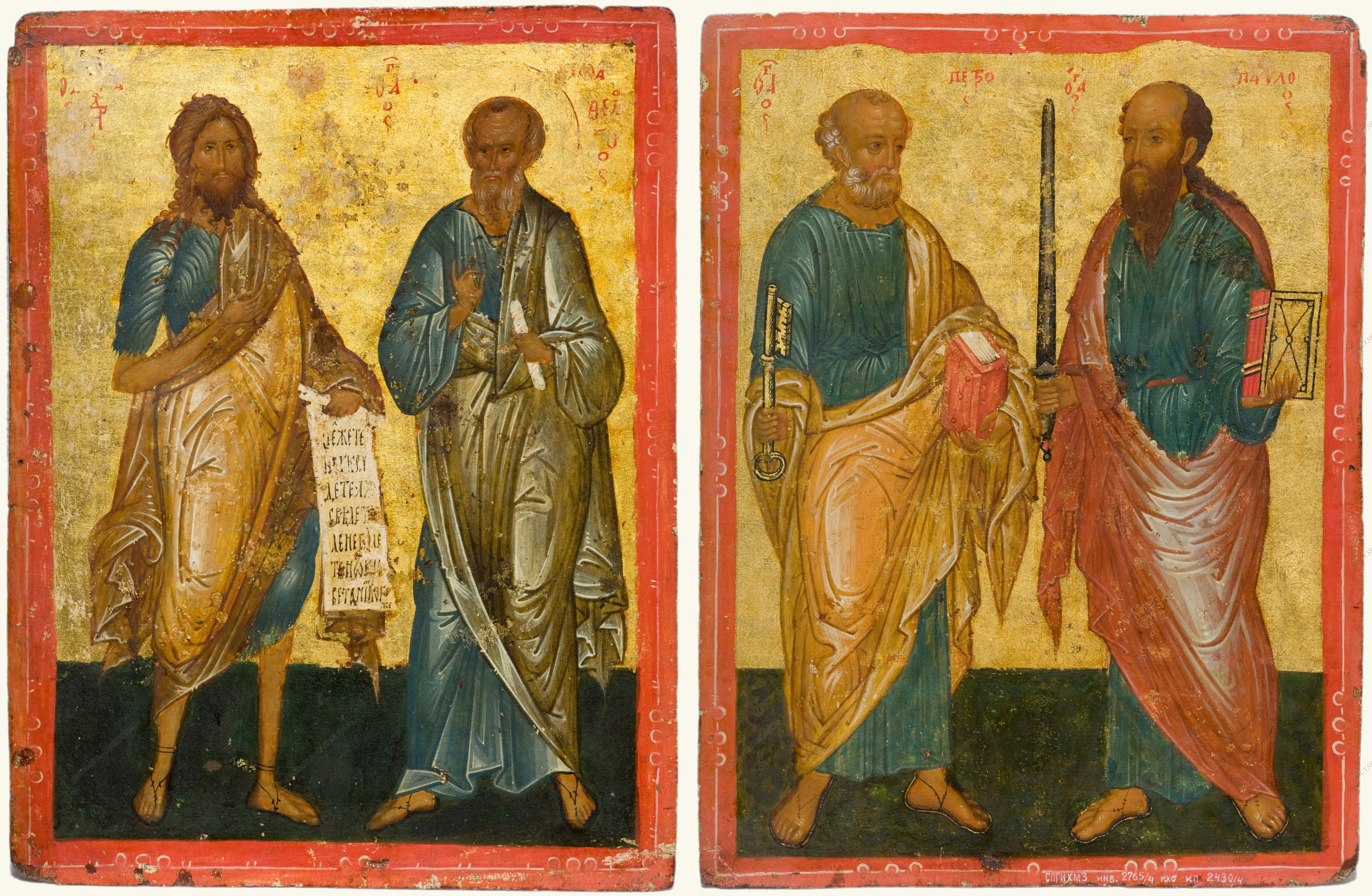 Двусторонняя икона: Святые Иоанн Предтеча и Иоанн Богослов. Апостолы Петр И Павел