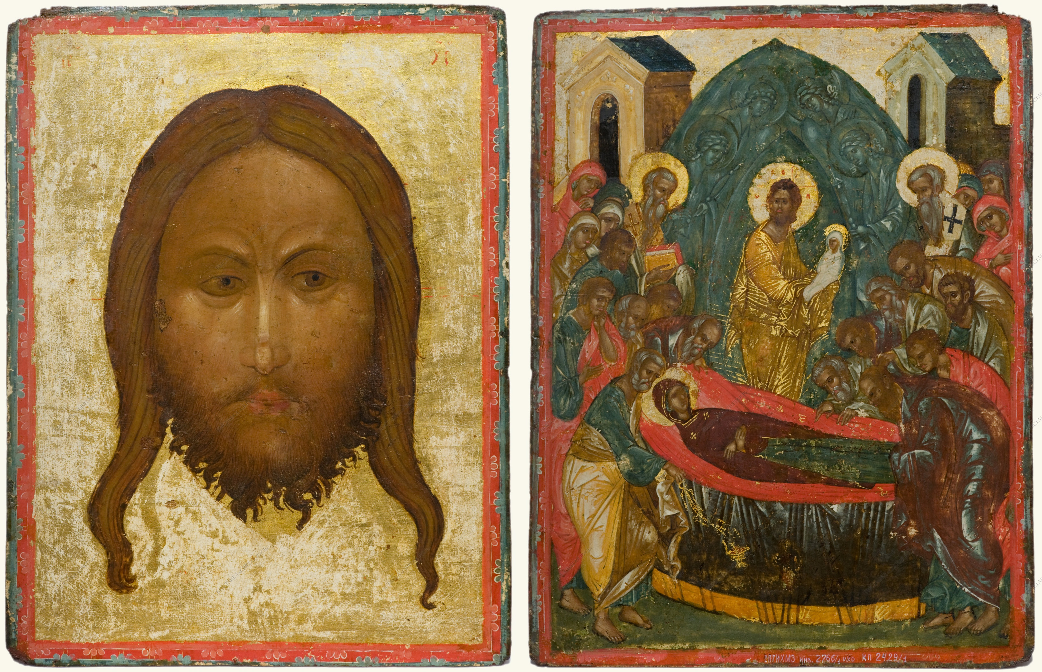 Двусторонняя икона: Спас Нерукотворный. Успение Богоматери