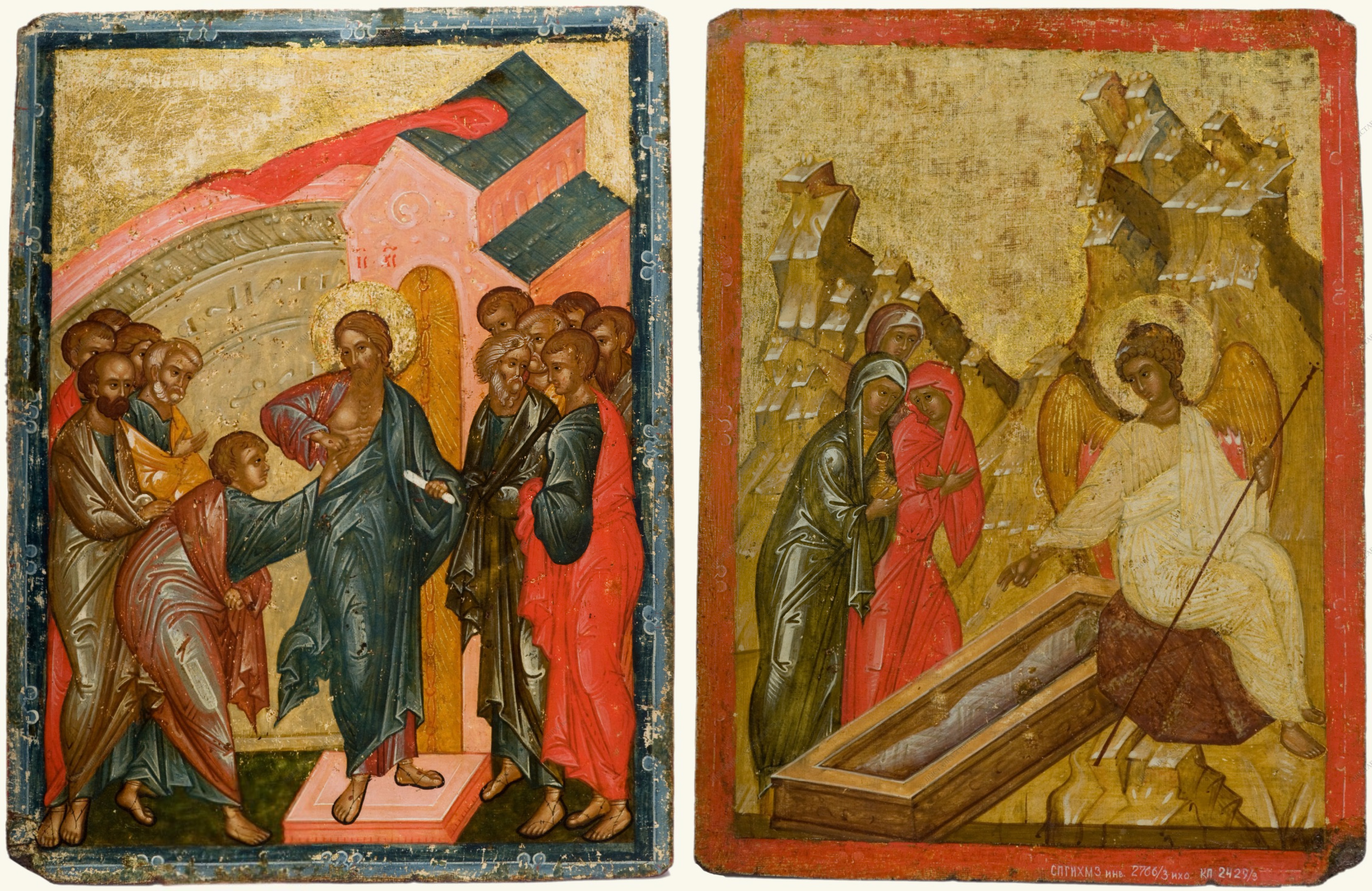 Двусторонняя икона: Уверение Фомы. Жены-Мироносицы у гроба