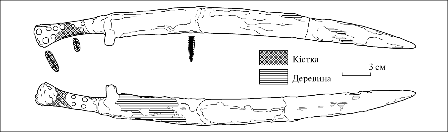 Судя по набору вооружения, обладатель этого меча, скорее всего, был конным воином-дружинником. Его погребение стоит в одном ряду с такими известными захоронениями тяжеловооруженных всадников V в. до н. э. как курган 2 Гладковщина и погребение 1 в кургане Новорозановка.