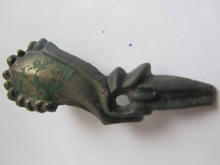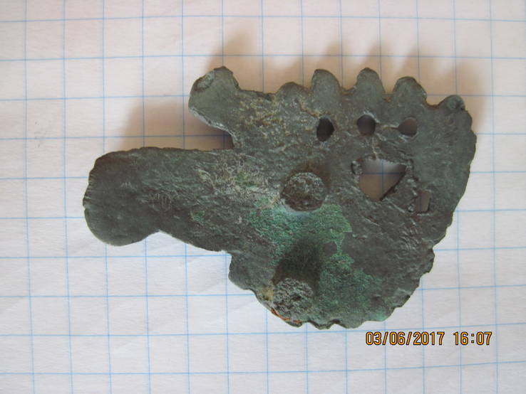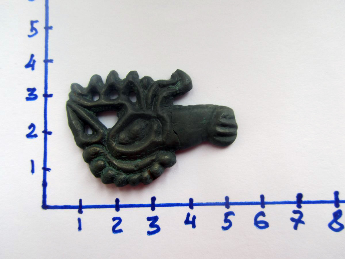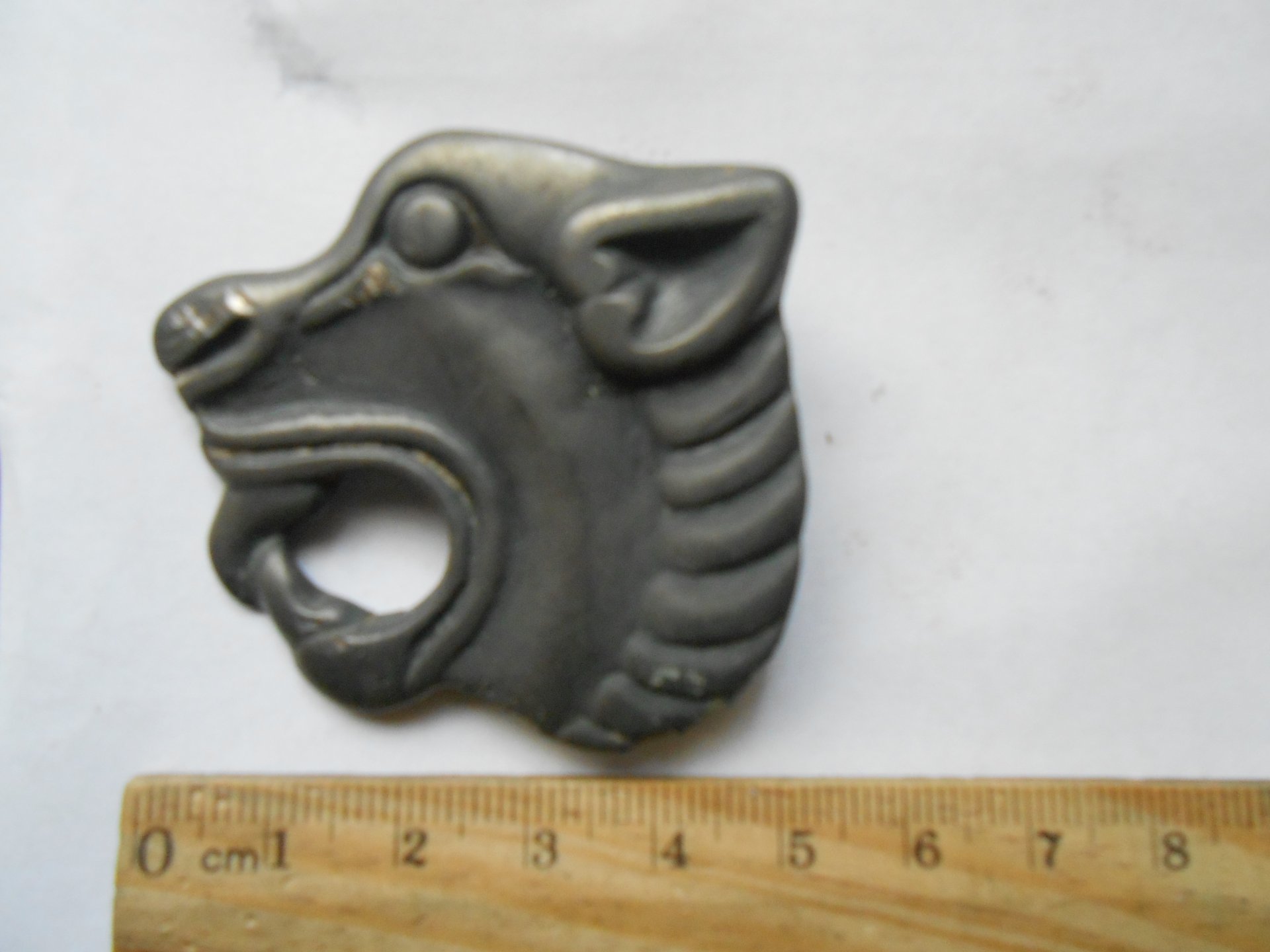 Прекрасно сохранившуюся бляху изображающую голову хищника из семейства кошачьих представил Nibelyng89 на REIBERT.info. Минимальные потери от коррозии и оставшаяся на месте петля выгодно выделяет её на фоне остальных.