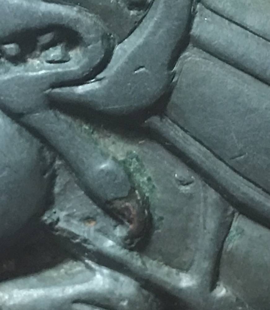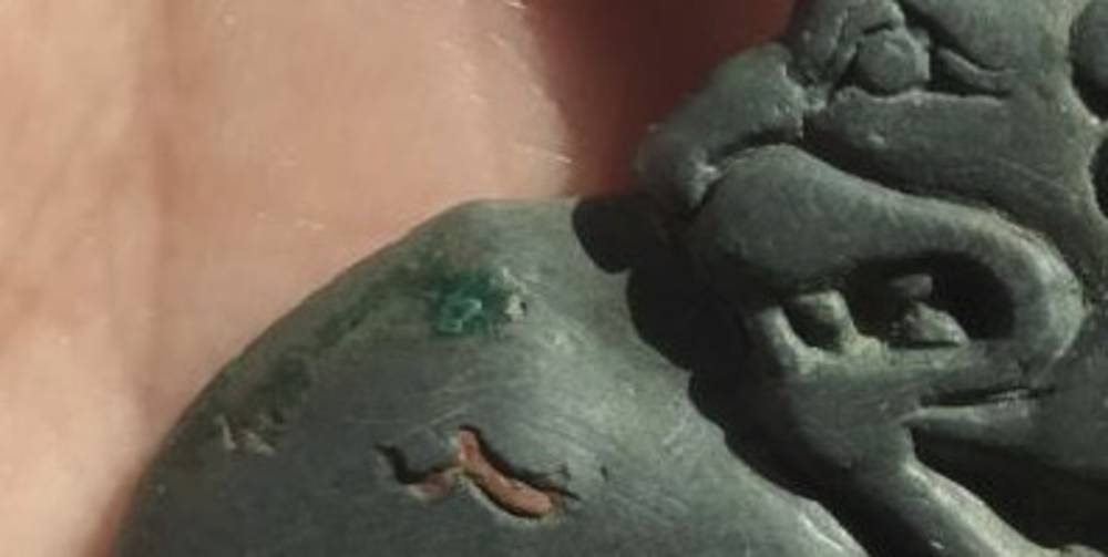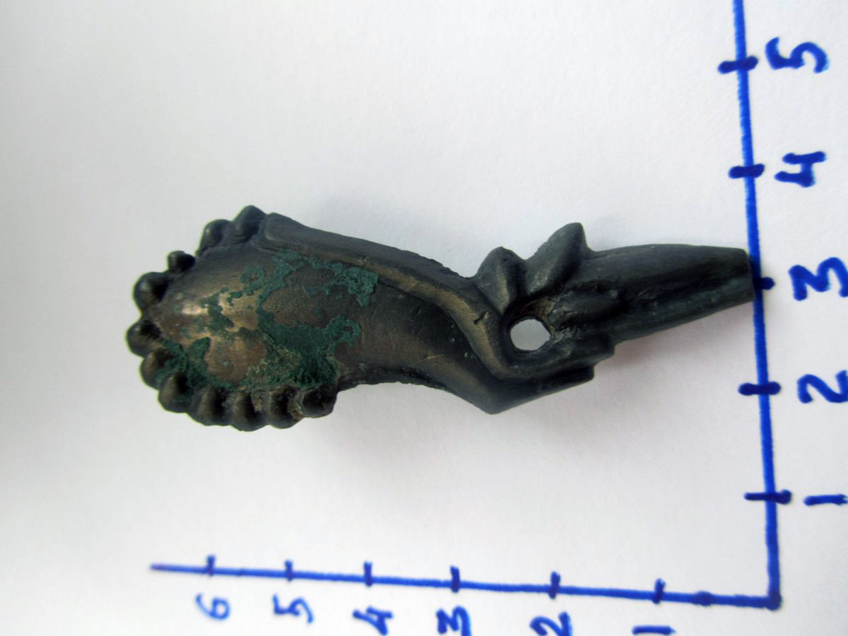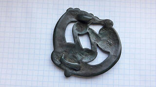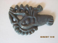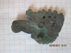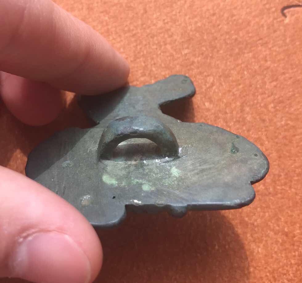 Прекрасно сохранившуюся бляху изображающую голову хищника из семейства кошачьих представил Nibelyng89 на REIBERT.info. Минимальные потери от коррозии и оставшаяся на месте петля выгодно выделяет её на фоне остальных.
