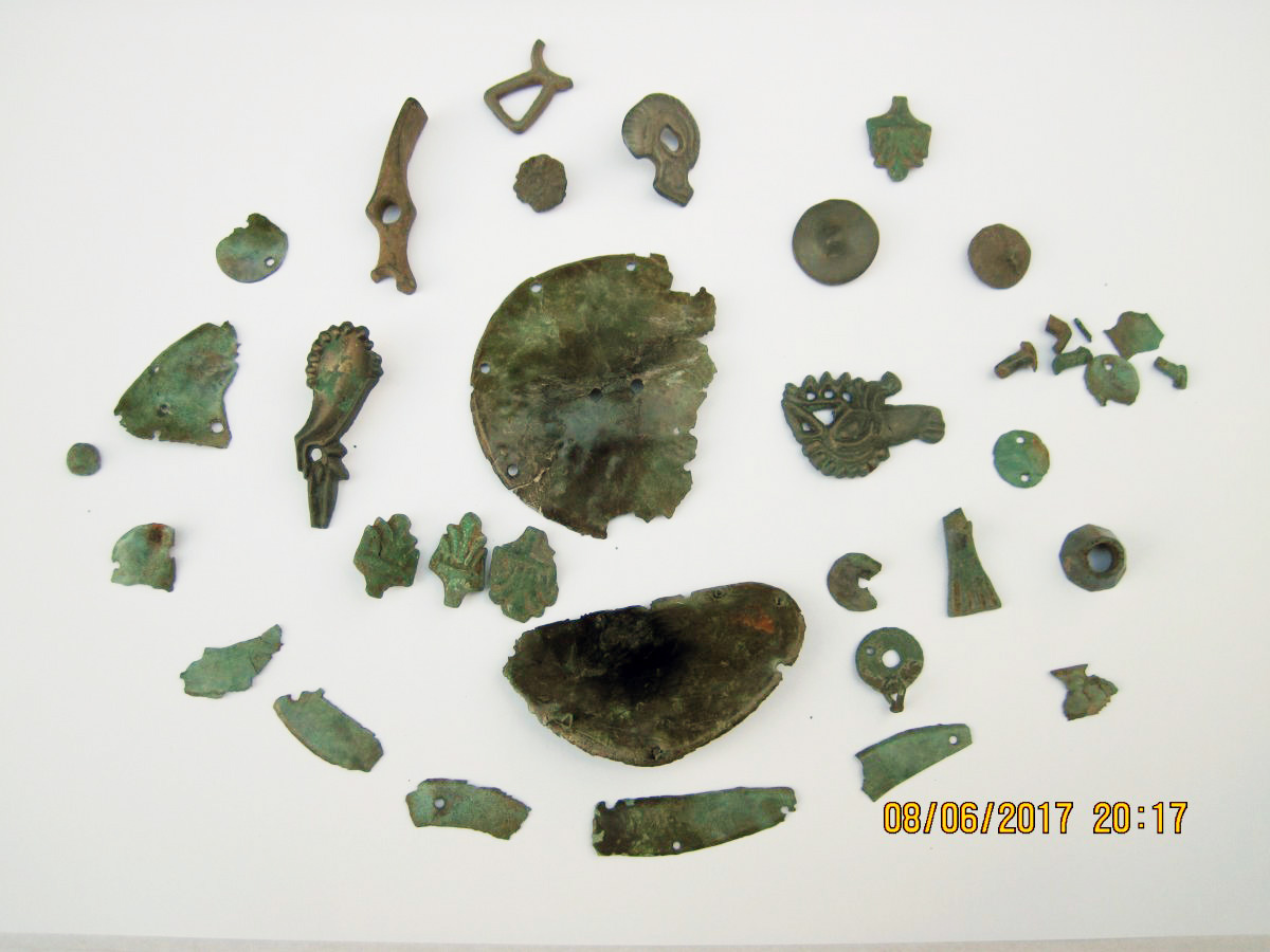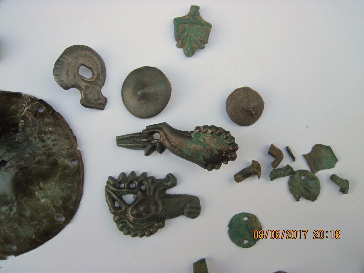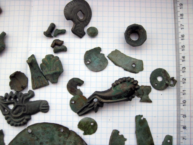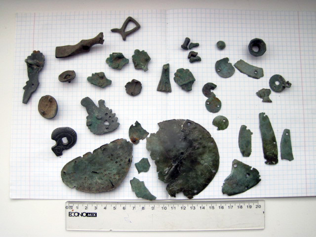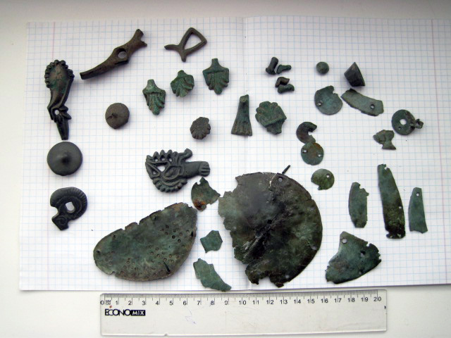 Украшения лошадиной сбруи, вероятно в старые времена представлявшие из себя единый комплект представил на REIBERT.info кладоискатель Aligator. В его состав входили: два фаллара (крупные круглые бляхи украшения коня), бляха с изображением головы лося, бляха в виде птичьей головы, бляха виде лягушачьей лапки, четыре бляшки с растительным орнаментом, и несколько других. Общий вес комплекса 202 г. на большинстве елементов есть солярные знаки. Многие предметы имеют очень старые повреждения.