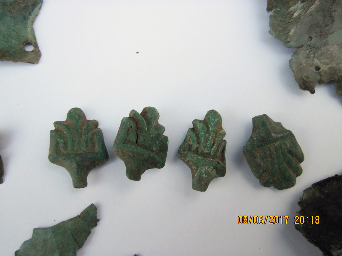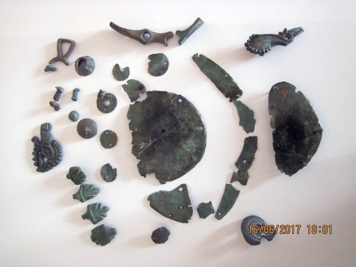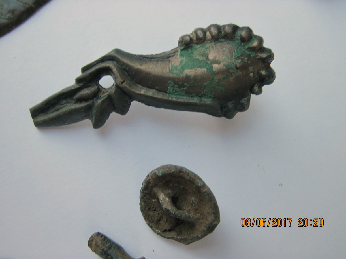 Украшения лошадиной сбруи, вероятно в старые времена представлявшие из себя единый комплект представил на REIBERT.info кладоискатель Aligator. В его состав входили: два фаллара (крупные круглые бляхи украшения коня), бляха с изображением головы лося, бляха в виде птичьей головы, бляха виде лягушачьей лапки, четыре бляшки с растительным орнаментом, и несколько других. Общий вес комплекса 202 г. на большинстве елементов есть солярные знаки. Многие предметы имеют очень старые повреждения.