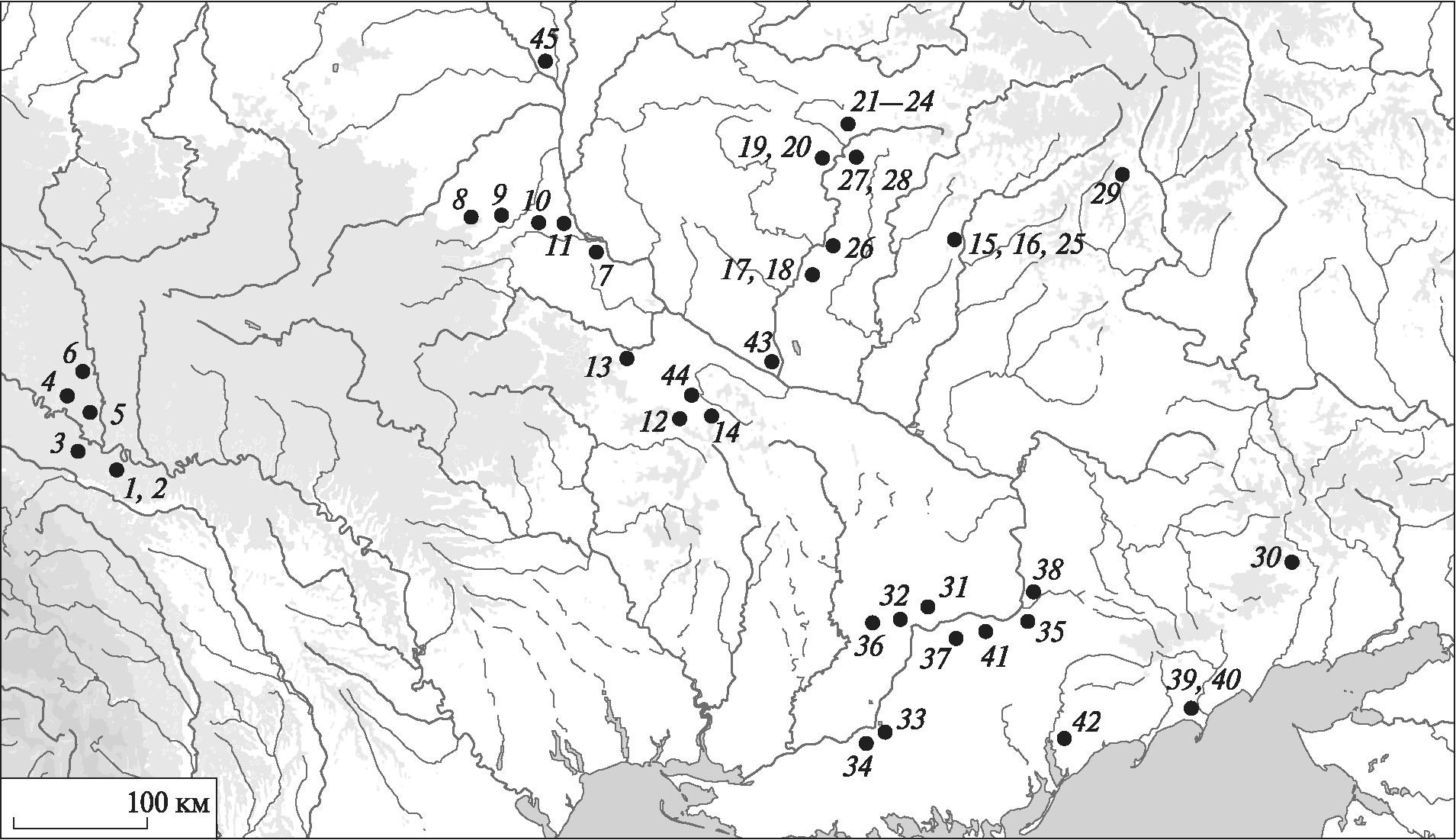 Каталог находок боевых топоров и чеканов и территории Украины (порядковый номер в каталоге соответствует пунктам на карте)