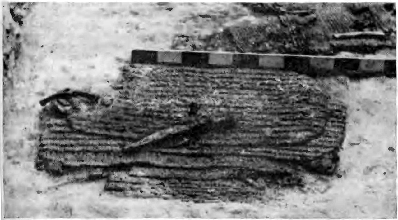 15. Истлевшая деревянная чаша, вероятно, полусферическая, диаметром 33, высотой 9 см. В ней лежали 75 пращевых камней диаметром 3-5 см.