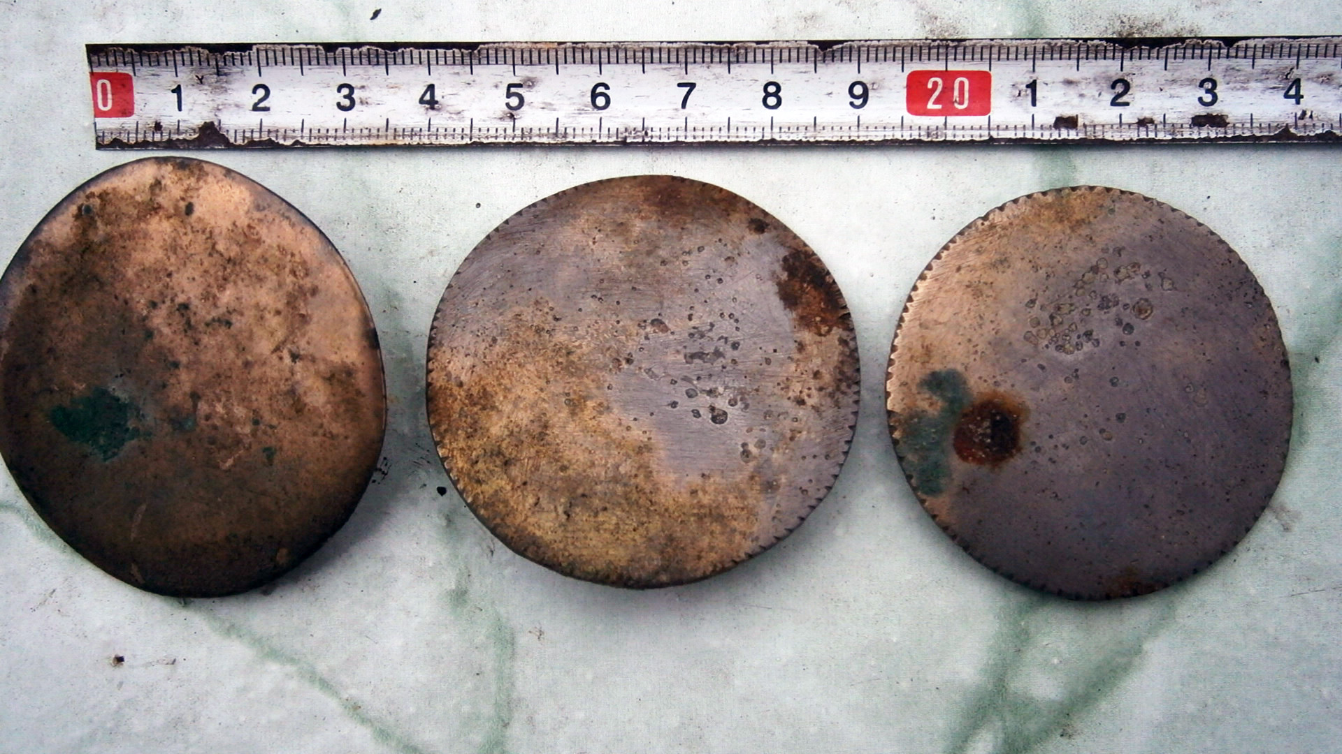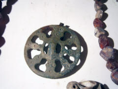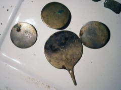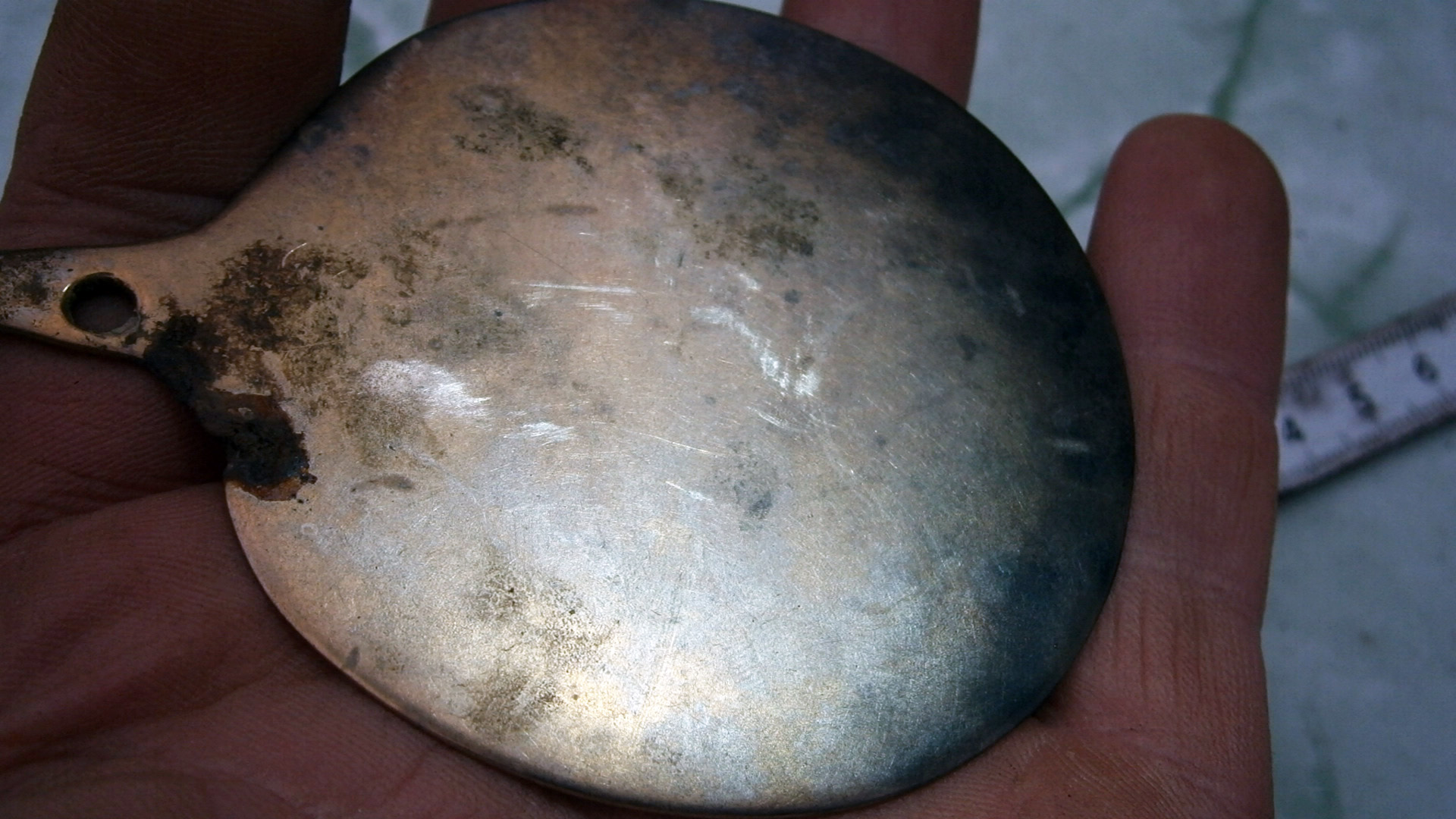 ЗеркальцаКруглые отполированные бляхи из белого металла, вероятно из бронзы с повышенным содержанием олова. Подобные артефакты более характерны для кочевников, но и у соседствующих с ними народов также могут встречаться.
