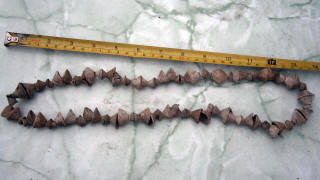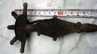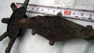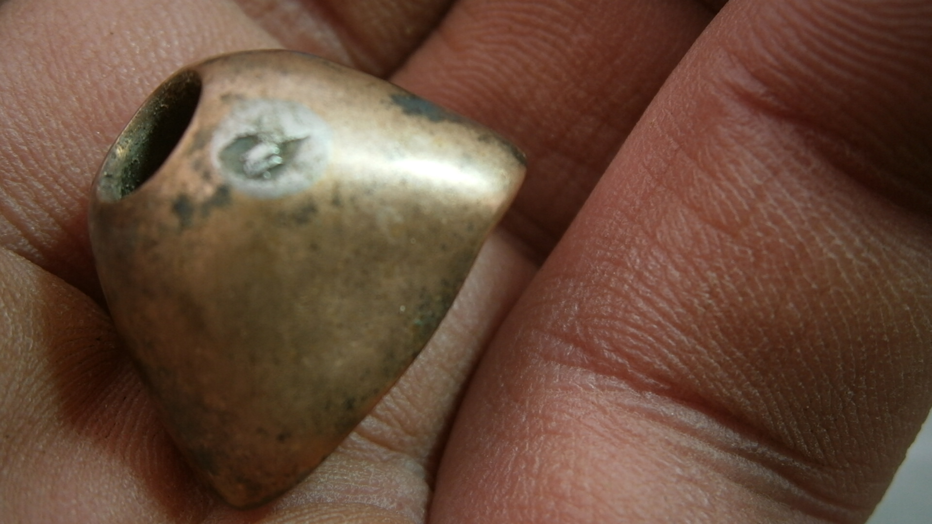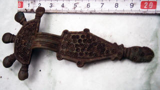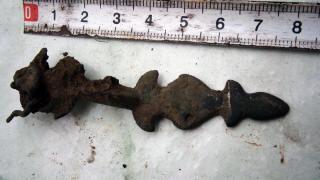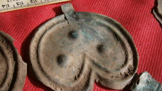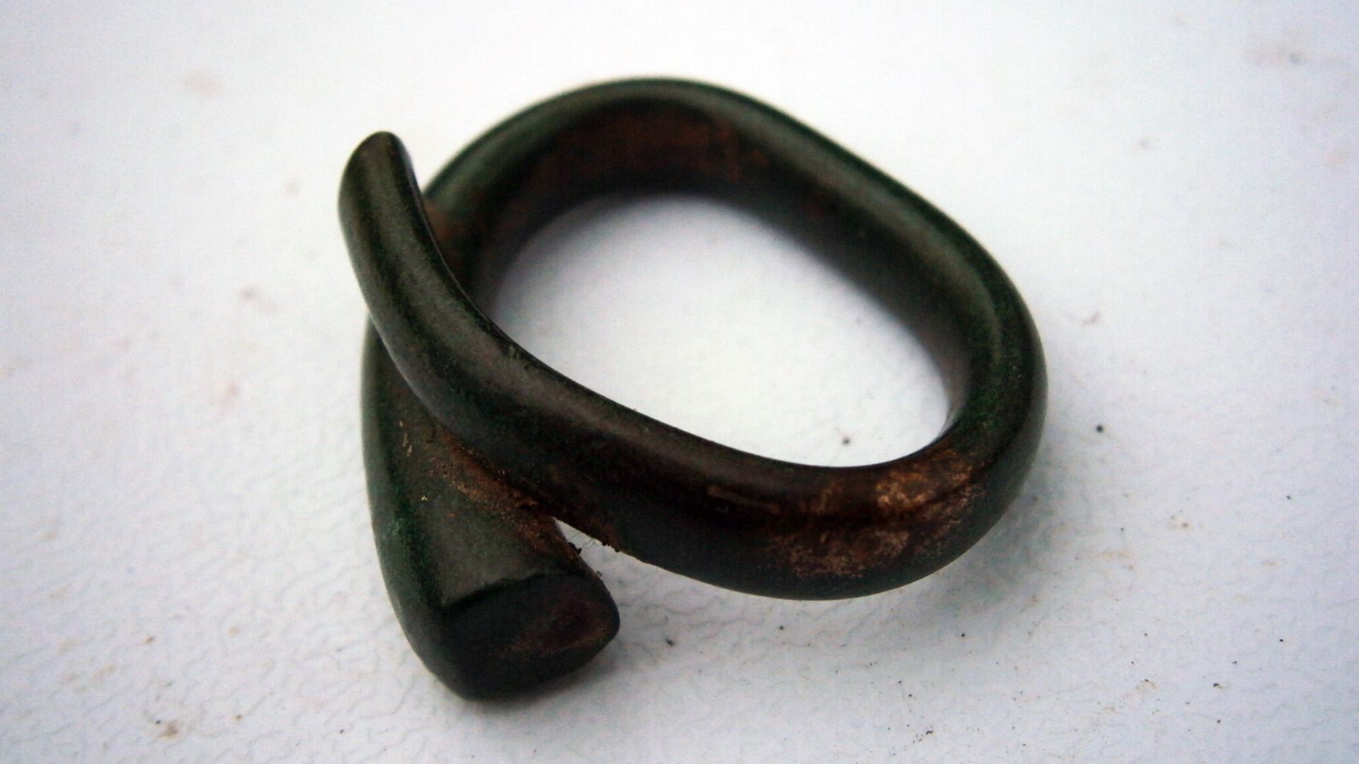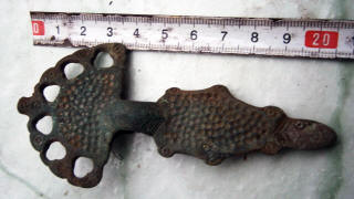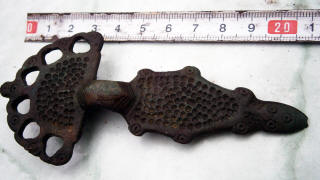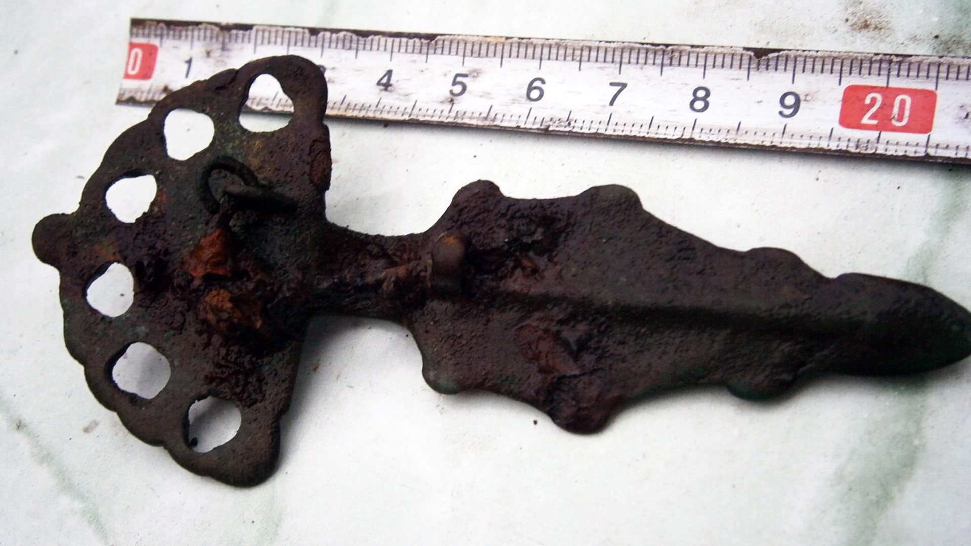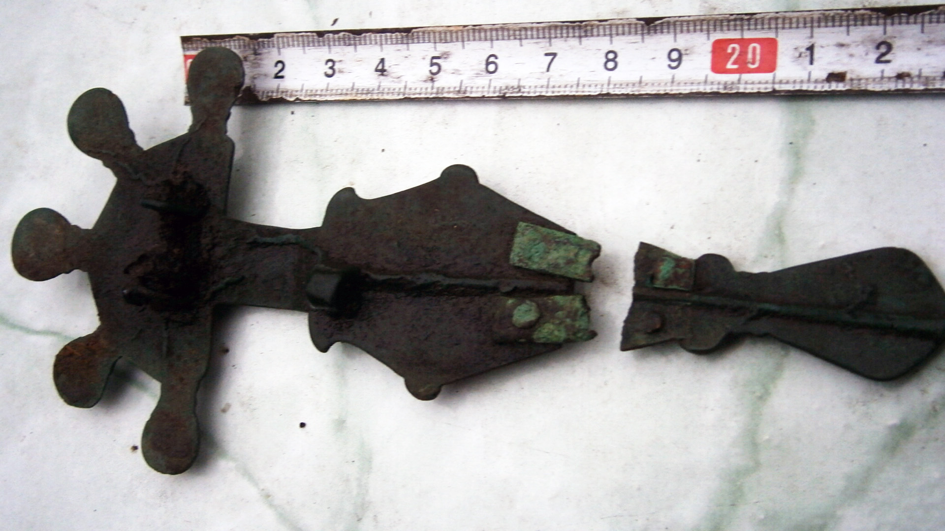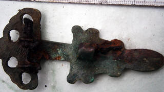 Пальчатые фибулы днепровского типаЛитые бронзовые пальчатые фибулы "днепровского" типа, украшенные циркульным и S-образным орнаментом, широко представлены в памятниках V-VII вв. н.э. юга Восточной Европы. Любопытно что одна фибула с обратной стороны имеет три выступа-нервюры для увеличения жесткости её конструкции, что однако не спасло её от слома еще в те стародавние времена.