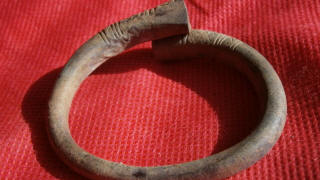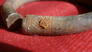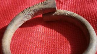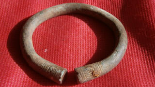 Браслеты из толстого прута, плавно расширяющийся к концамБронзовые массивные браслеты с расширяющимися и заходящими друг за друга концами. Подобные браслеты в материалах Пеньковской, Пражской культур представлены достаточно широко.