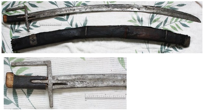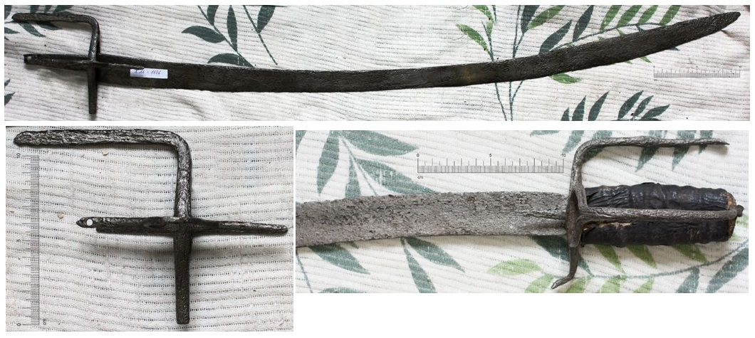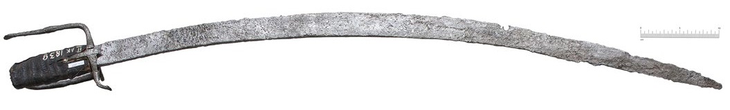В целом сложная форма, генетически связана с западноевропейской, на наш взгляд, представляет следующий этап развития сабельной гарды после L-образного, с дополнительными скобками, как это было в гардах мечей и ранних шпаг XVI в. Интересным выглядит также сочетание L-образной гарды с восточным клинком типа шамшир, изготовленным из обычной стали. Вероятно эта простая рабочая сабля имеет местное происхождение и свидетельствует о популярности в Речи Посполитой восточных, в частности персидских моделей клинков.