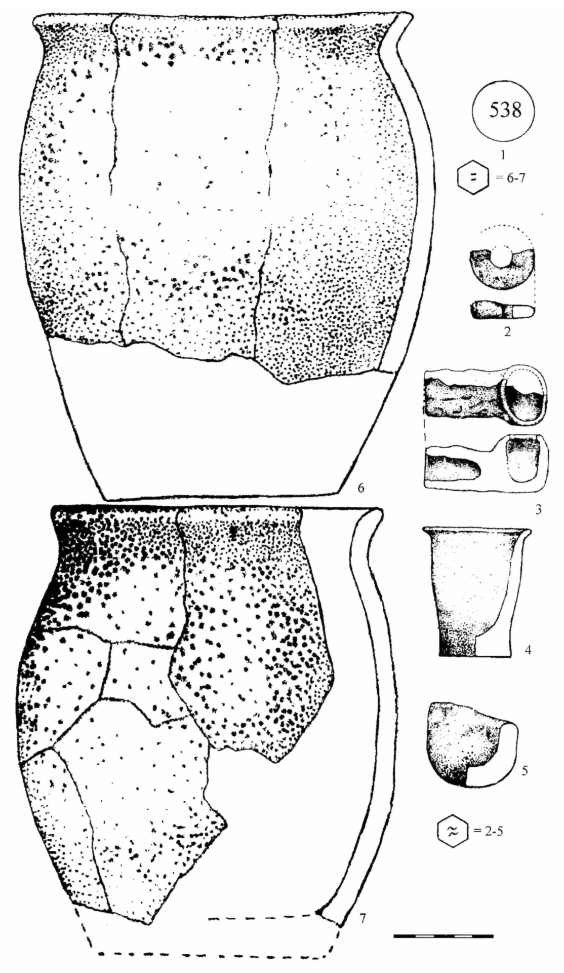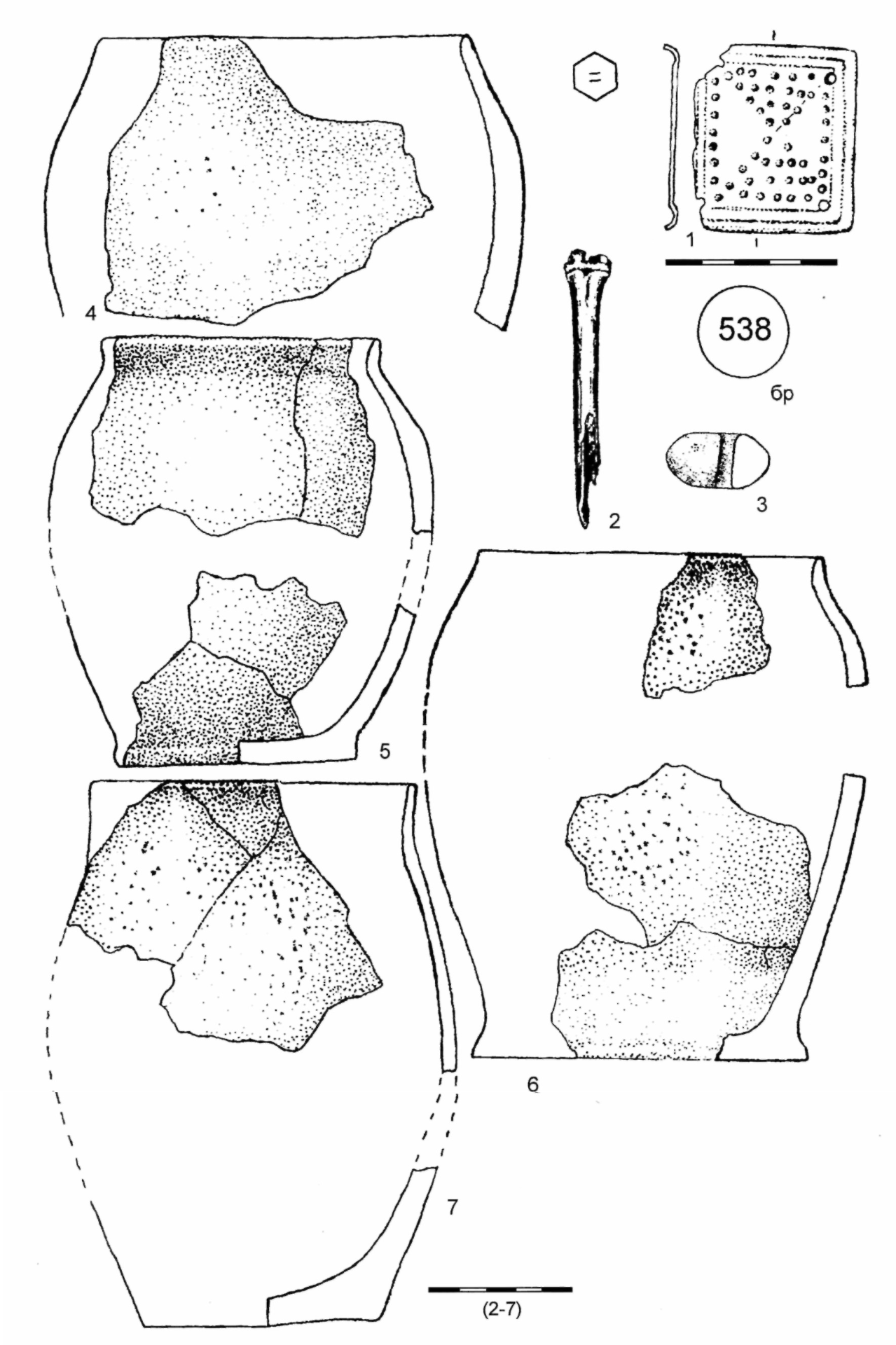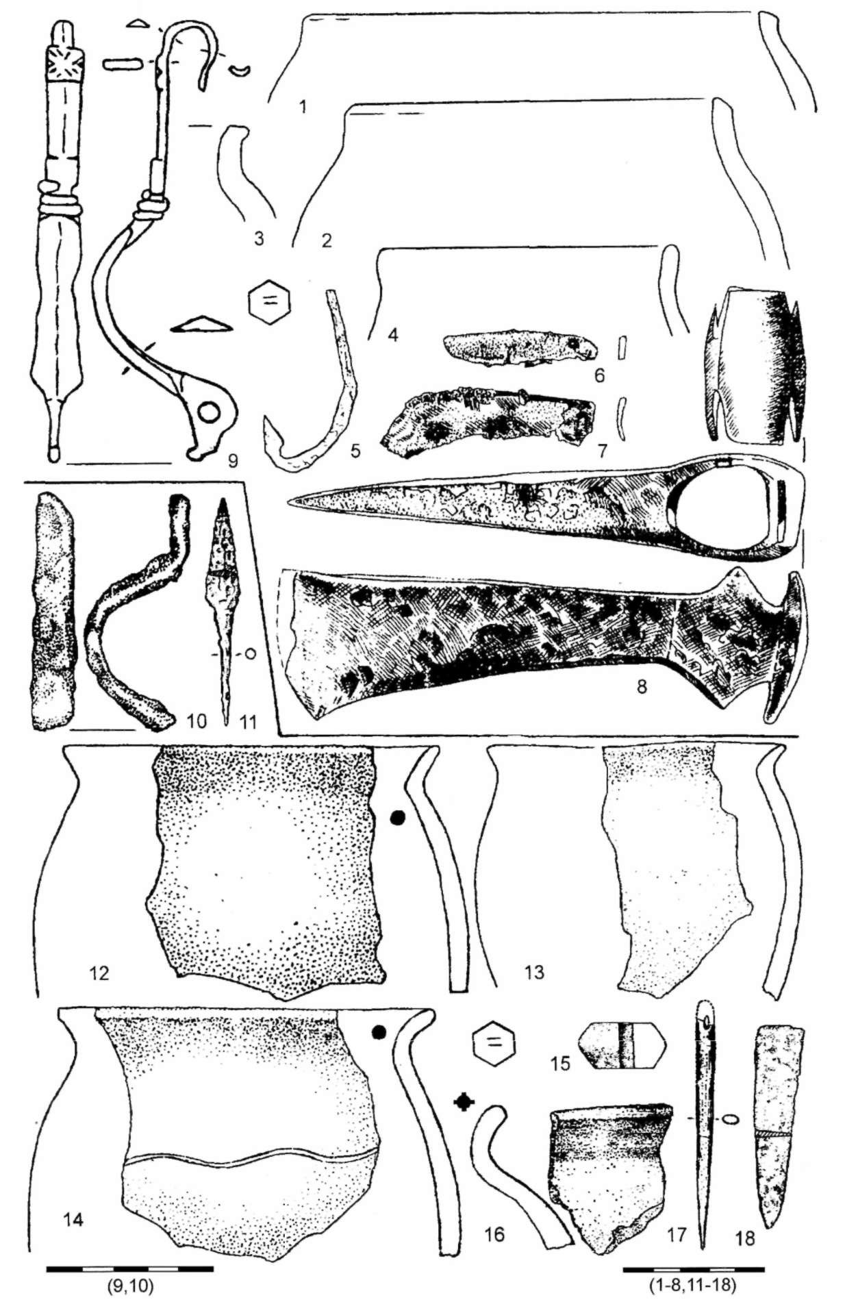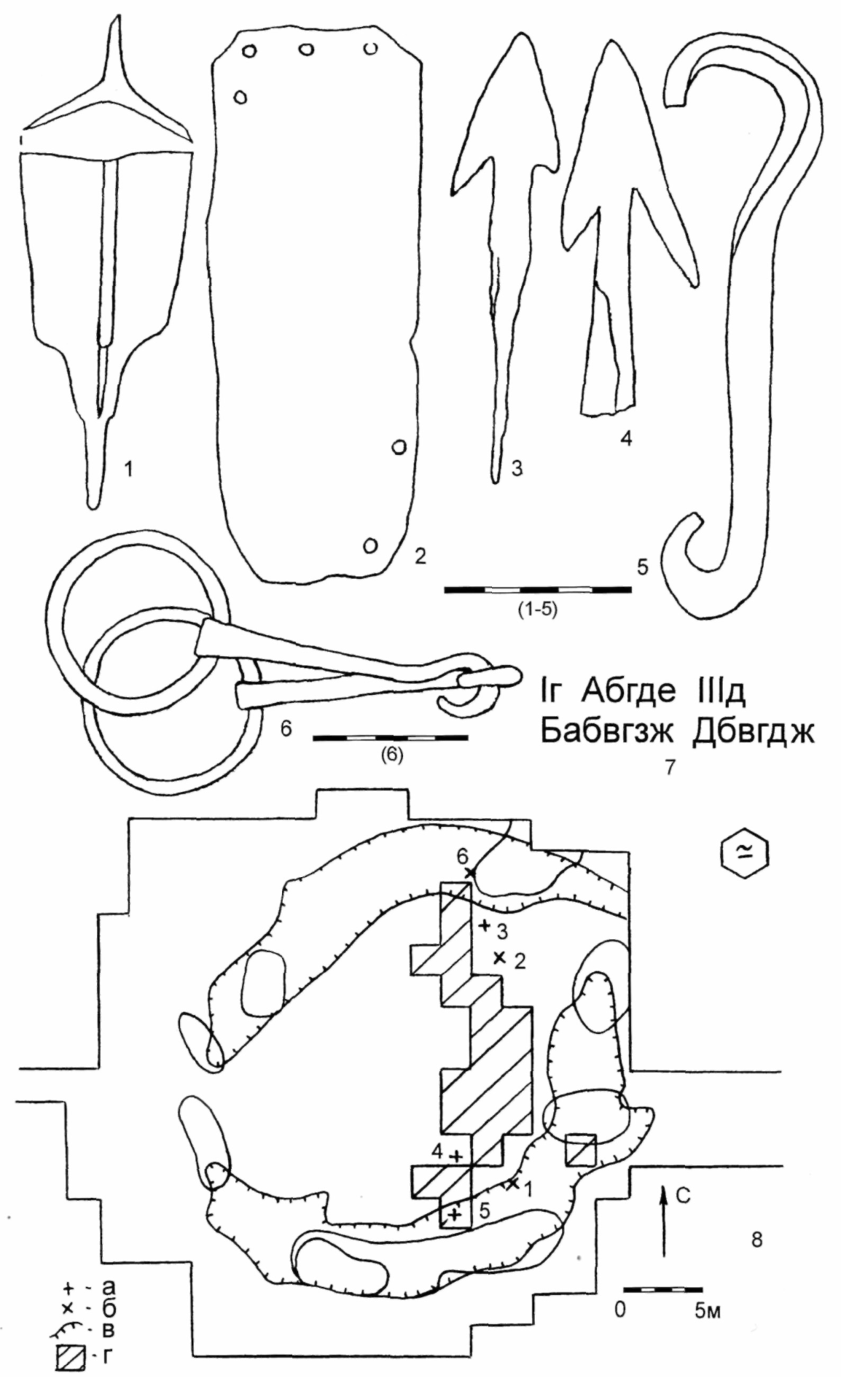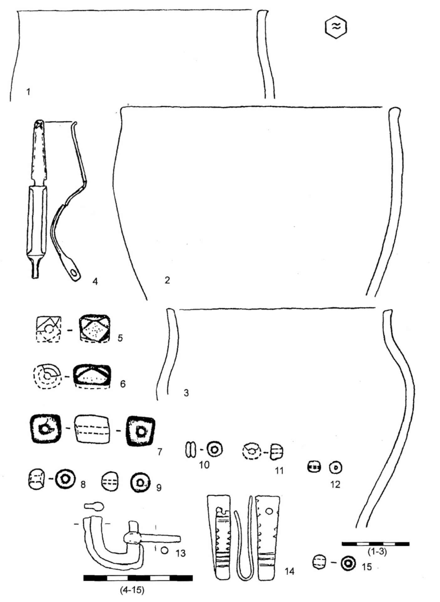 | Рис. 7. Хорск, погребение 2. | Рис. 8. Бэлень-Ромэнь, жилище 28. точный масштаб? | Рис. 9. Бернашовка, жилище 36. |