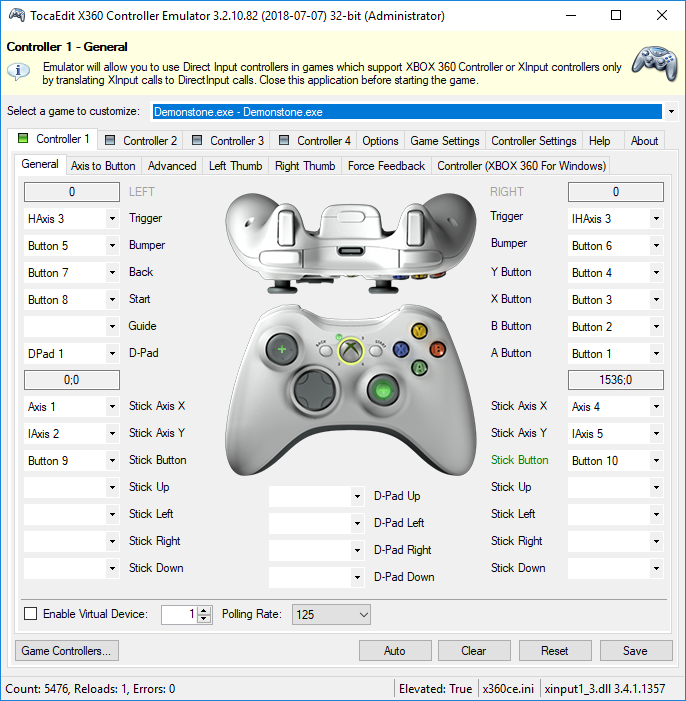 В начале небольшое отступление. Программа, эмулирующая геймпады приставки Xbox 360/One. Если у вас уже оригинальный геймпад от Xbox, проводной или беспроводной, эмулятор, скорее всего, она вам не нужна. Зачем эмулировать и так имеющееся? Но я использую её как справку о том где какая кнопка. Потому что в настройках игр часто можно видеть такое: