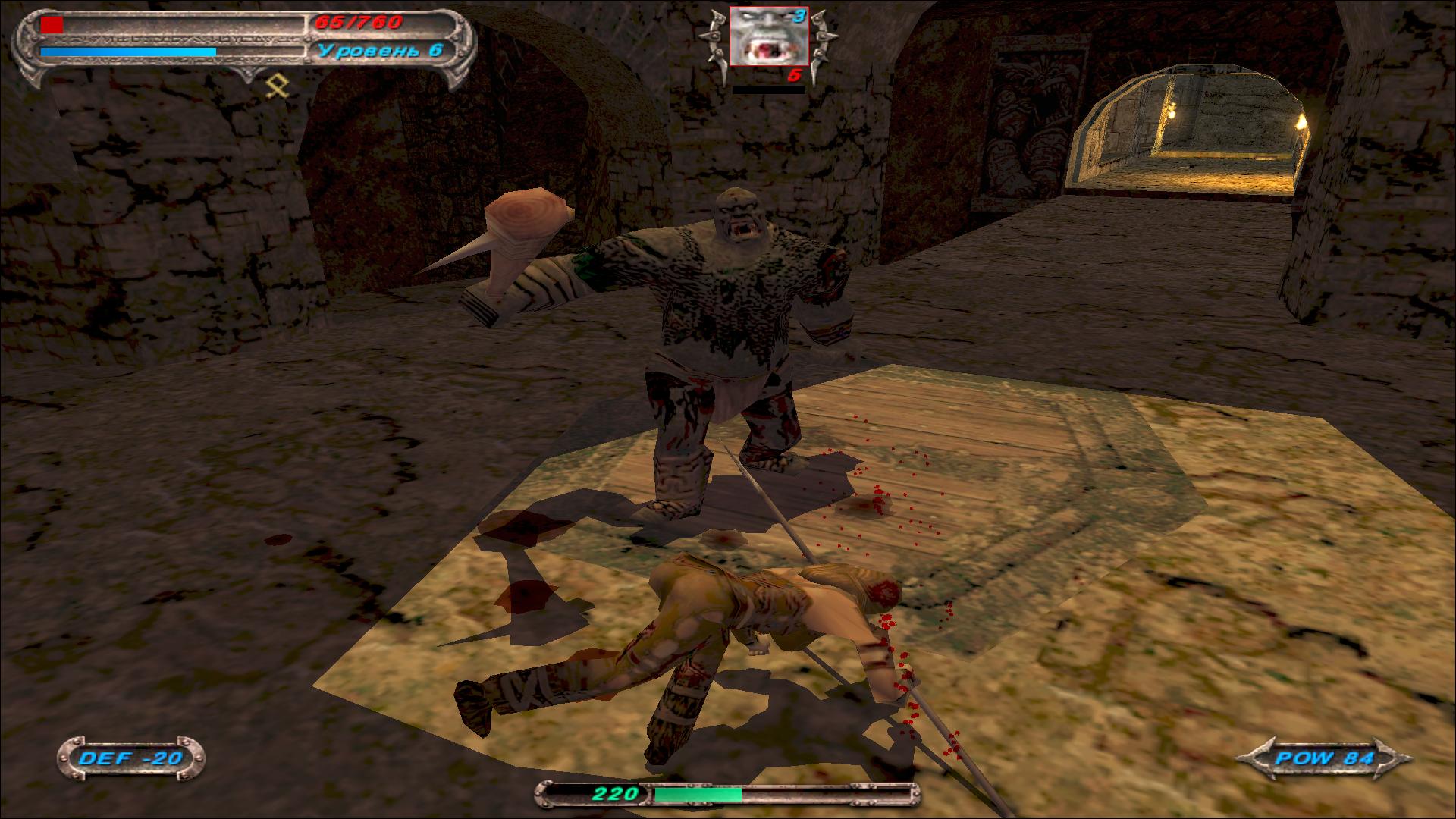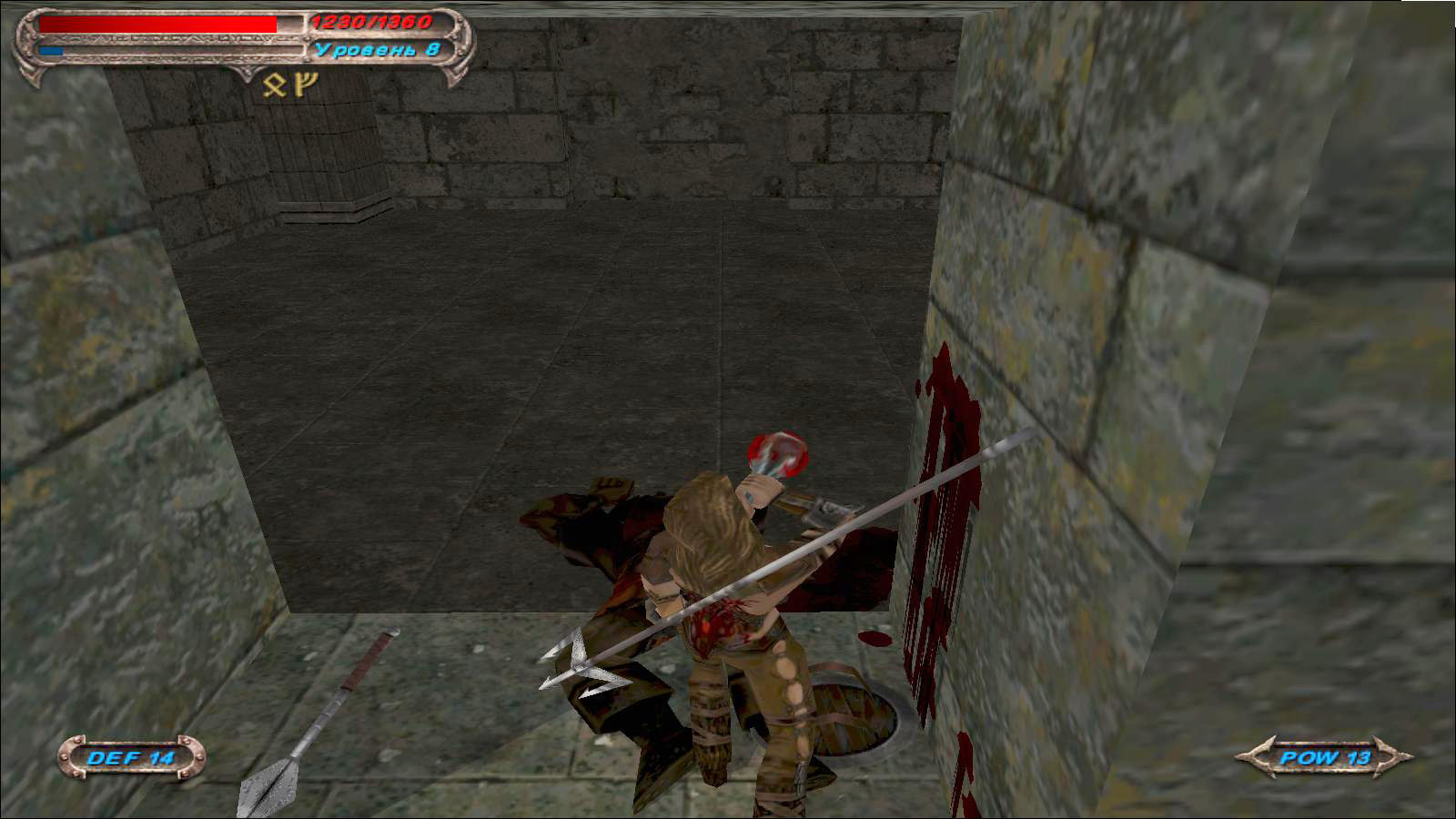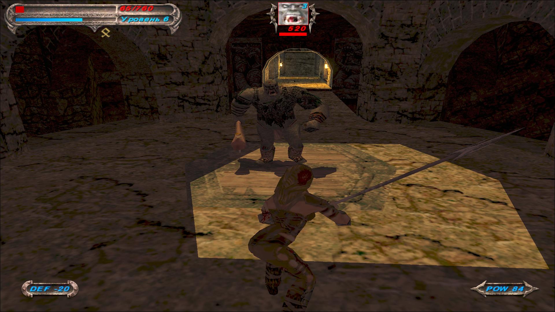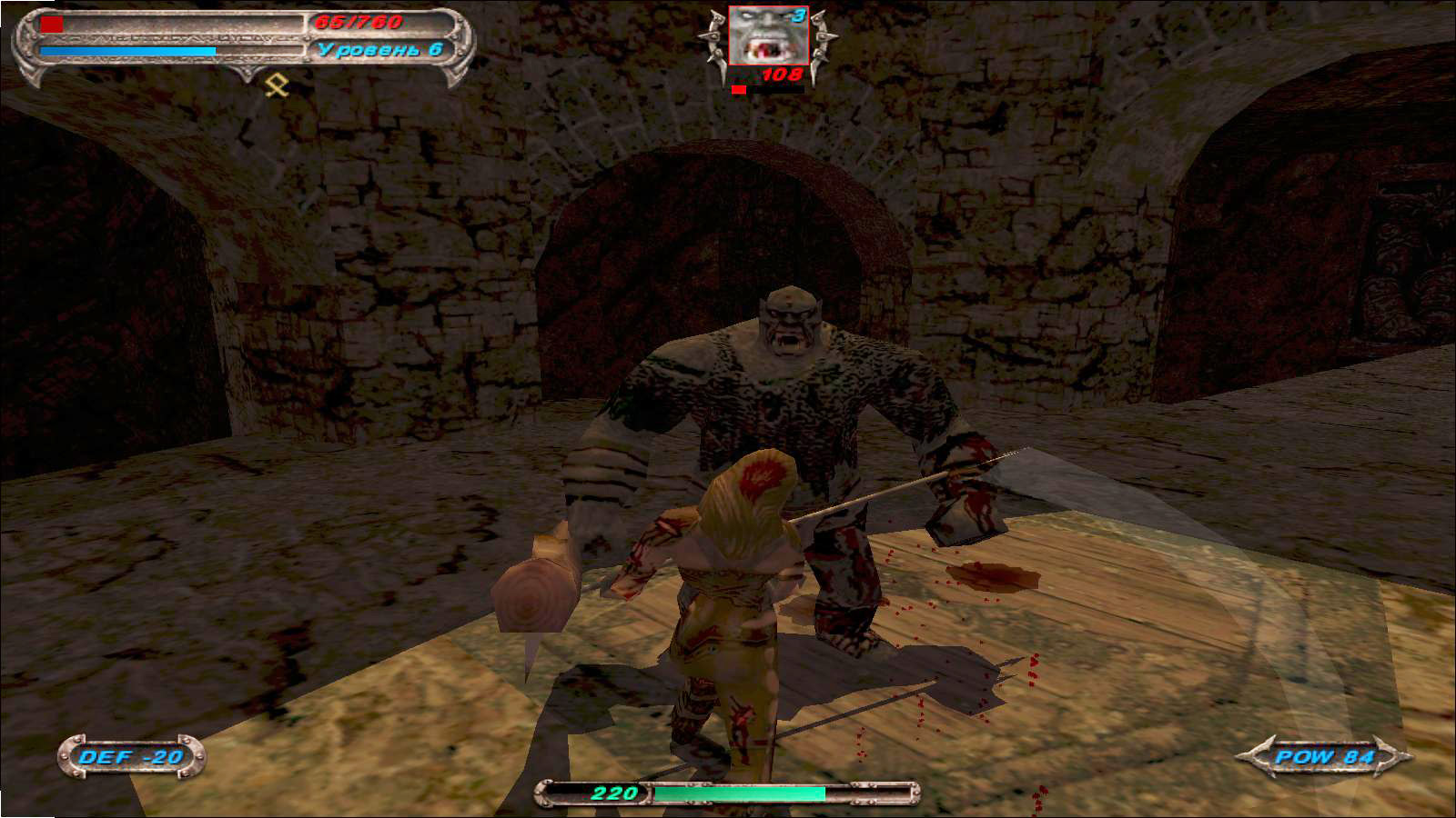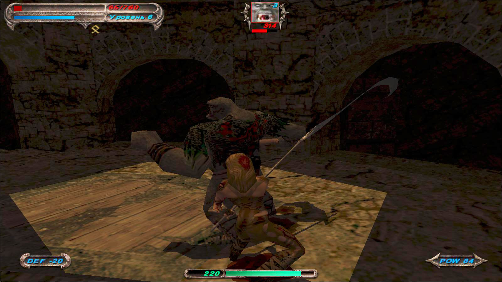 Проблема зависаний и вылетов из игры Blade of Darkness есть, она не очень так тоб критична, но есть место где играя за амазонку игра вылетает всегда. Есть два решения этой проблемы пройти это проблемное место задом: то есть открыли ключом дверь, развернулись и задом прошли в дверной проём до лесницы. Или, что проще – переключились на вид от первого лица, по умолчанию – дважды нажать клавишу +. Прошли – опять дважды нажать +. Кроме того на вкладках Оружие а также Особые есть список оружия, которые ваш герой может применять без проблем. В игре есть так же несколько экземляров оружия вообще не предназначеных для любым героем или противником, как например меч Затоичи, или секира Лезвие Света. Подобное оружие обладает повышеным уроном как для своих уровне, но имеют большие штрафы по энергии. Пользоваться ими можно только для того чтобы разнообразить геймплей. Смотрите видео как амазонка убивает мечом Затоичи босса первого уровня. Босс этот именуется Гуль – анг. Ghoul, на дальнейших уровнях они будут встречаться уже как рядовые бойцы:
