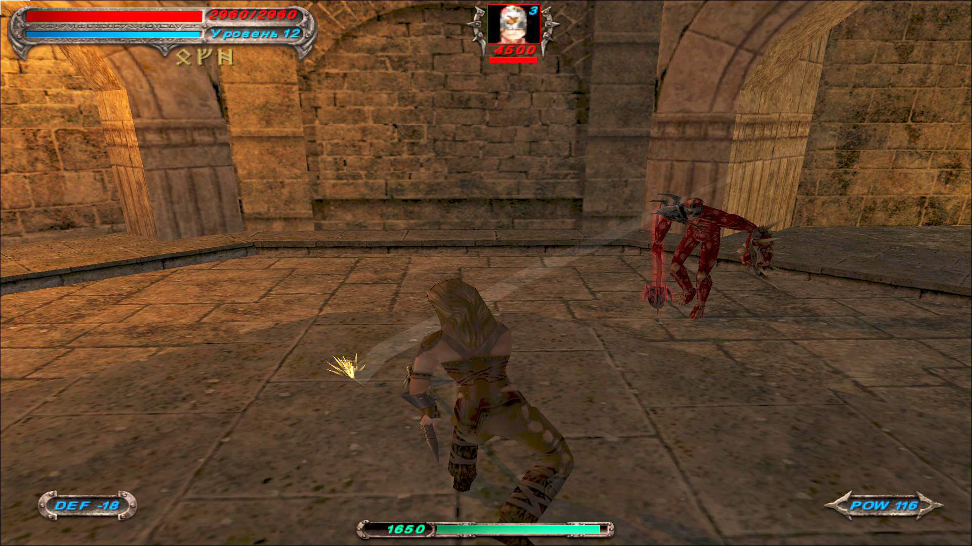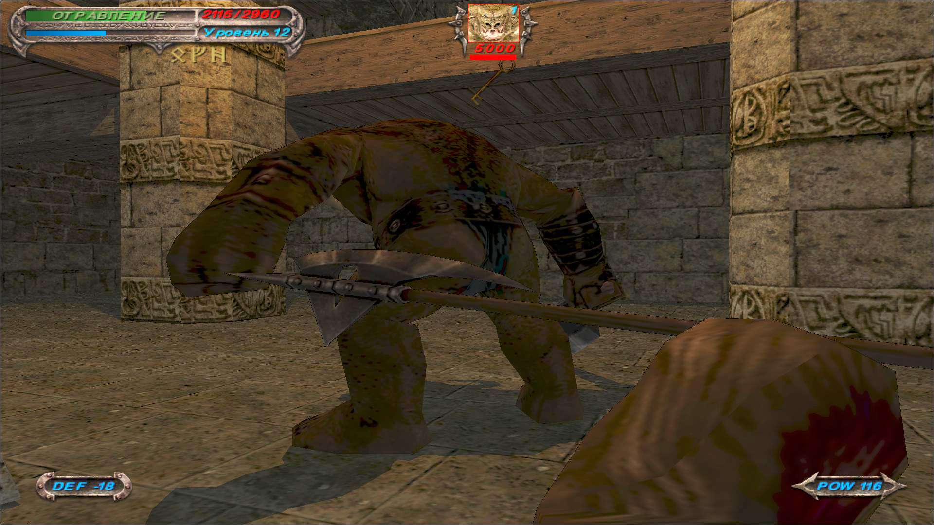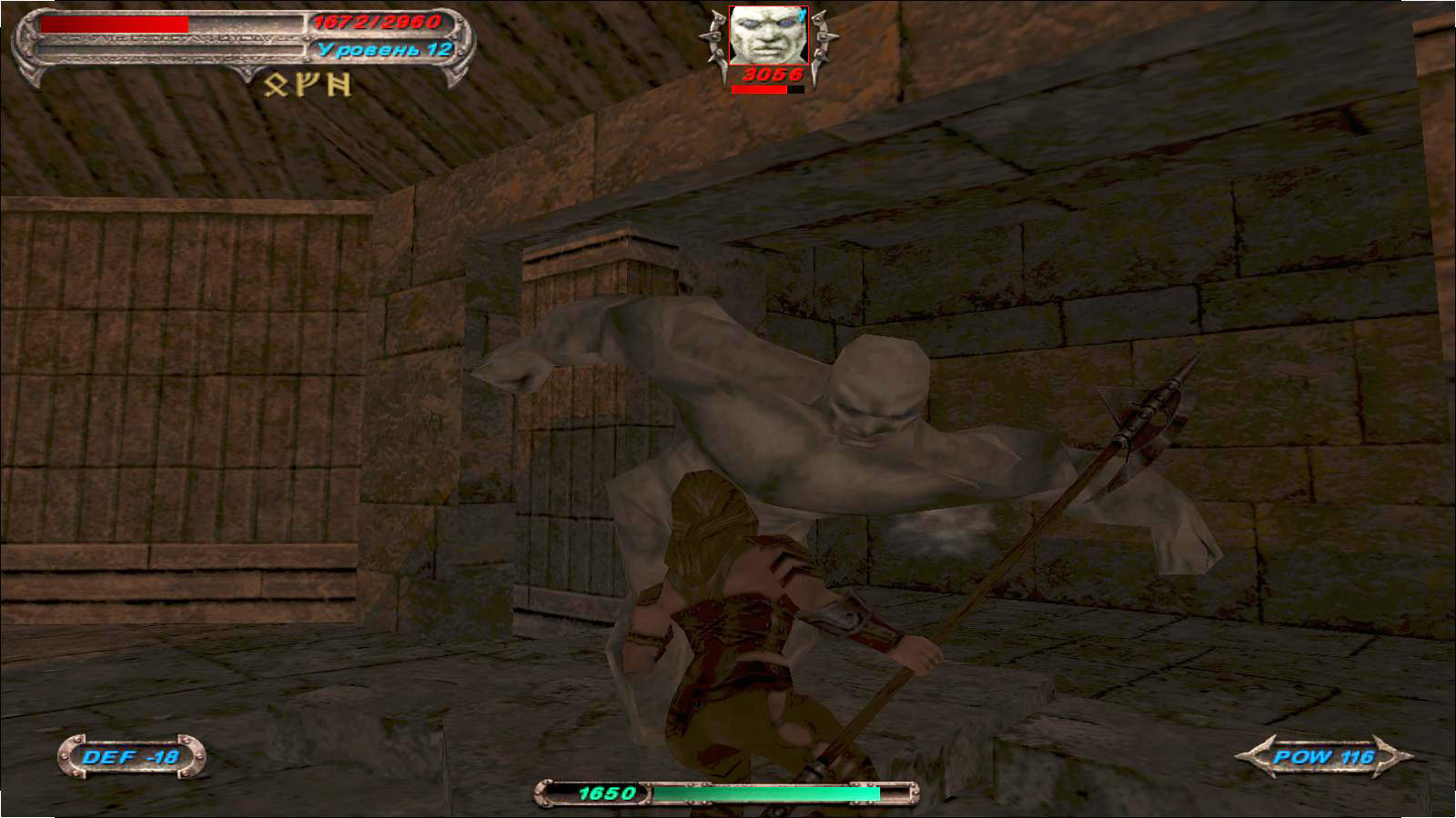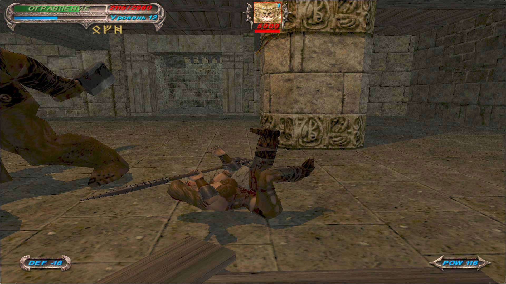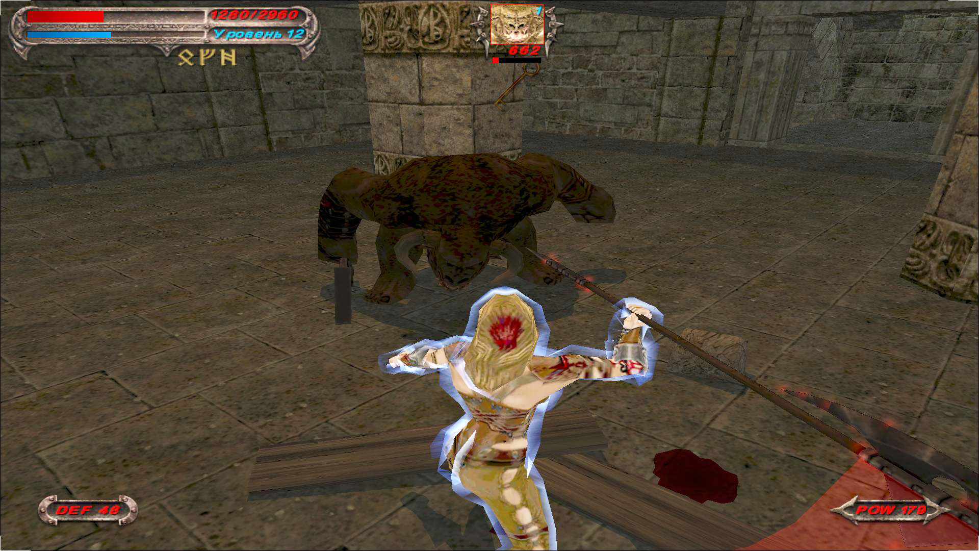 Проблема зависаний и вылетов из игры Blade of Darkness есть, она не очень так тоб критична, но есть место где играя за амазонку игра вылетает всегда. Есть два решения этой проблемы пройти это проблемное место задом: то есть открыли ключом дверь, развернулись и задом прошли в дверной проём до лесницы. Или, что проще – переключились на вид от первого лица, по умолчанию – дважды нажать клавишу +. Прошли – опять дважды нажать +. Кроме того на вкладках Оружие а также Особые есть список оружия, которые ваш герой может применять без проблем. В игре есть так же несколько экземляров оружия вообще не предназначеных для любым героем или противником, как например меч Затоичи, или секира Лезвие Света. Подобное оружие обладает повышеным уроном как для своих уровне, но имеют большие штрафы по энергии. Пользоваться ими можно только для того чтобы разнообразить геймплей. Смотрите видео как амазонка убивает мечом Затоичи босса первого уровня. Босс этот именуется Гуль – анг. Ghoul, на дальнейших уровнях они будут встречаться уже как рядовые бойцы: