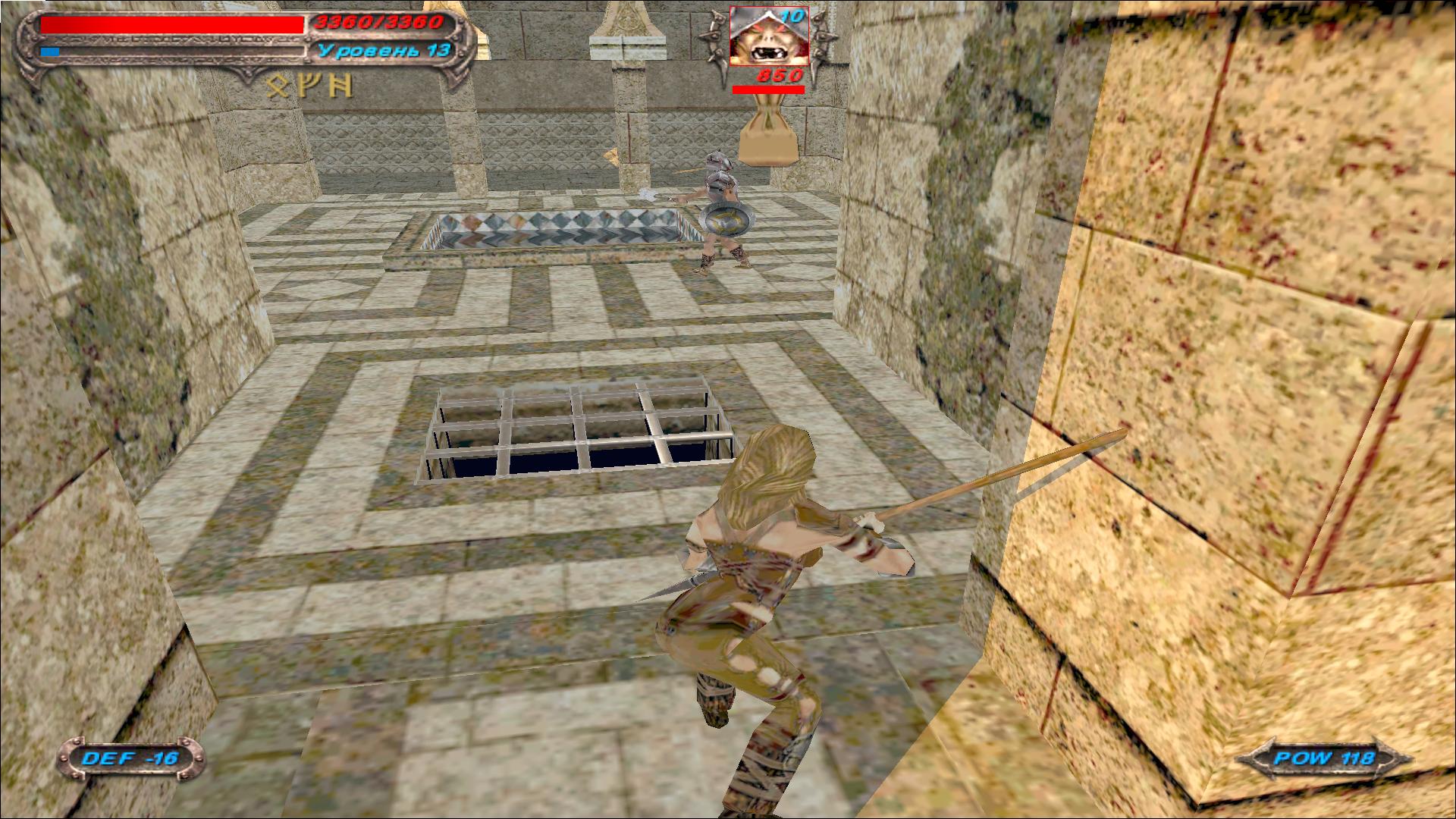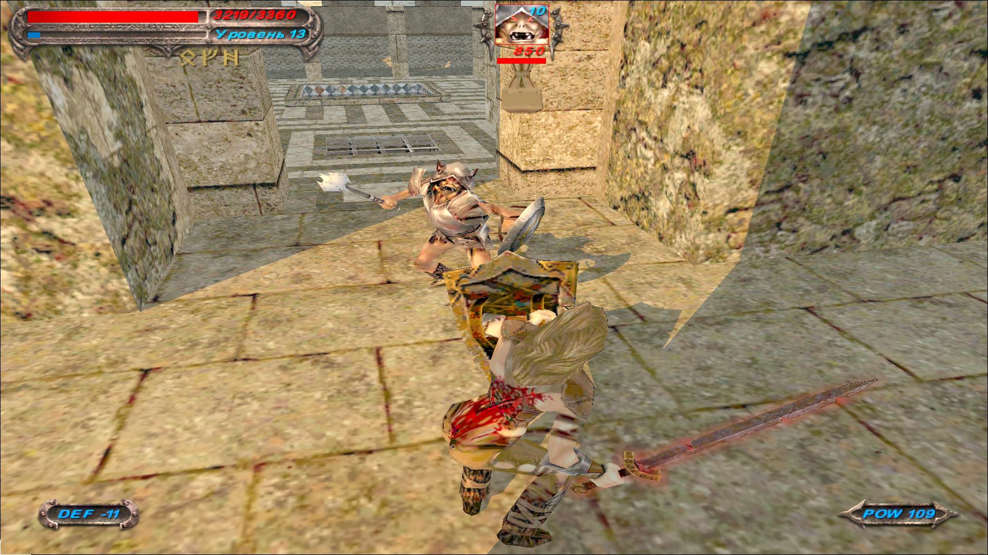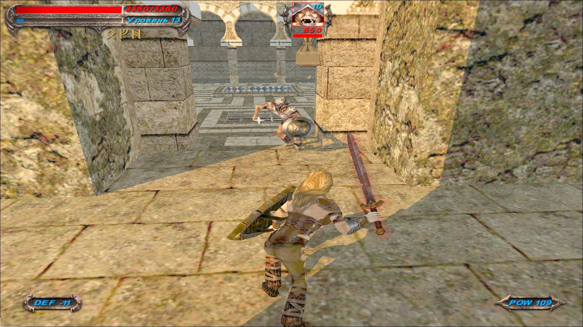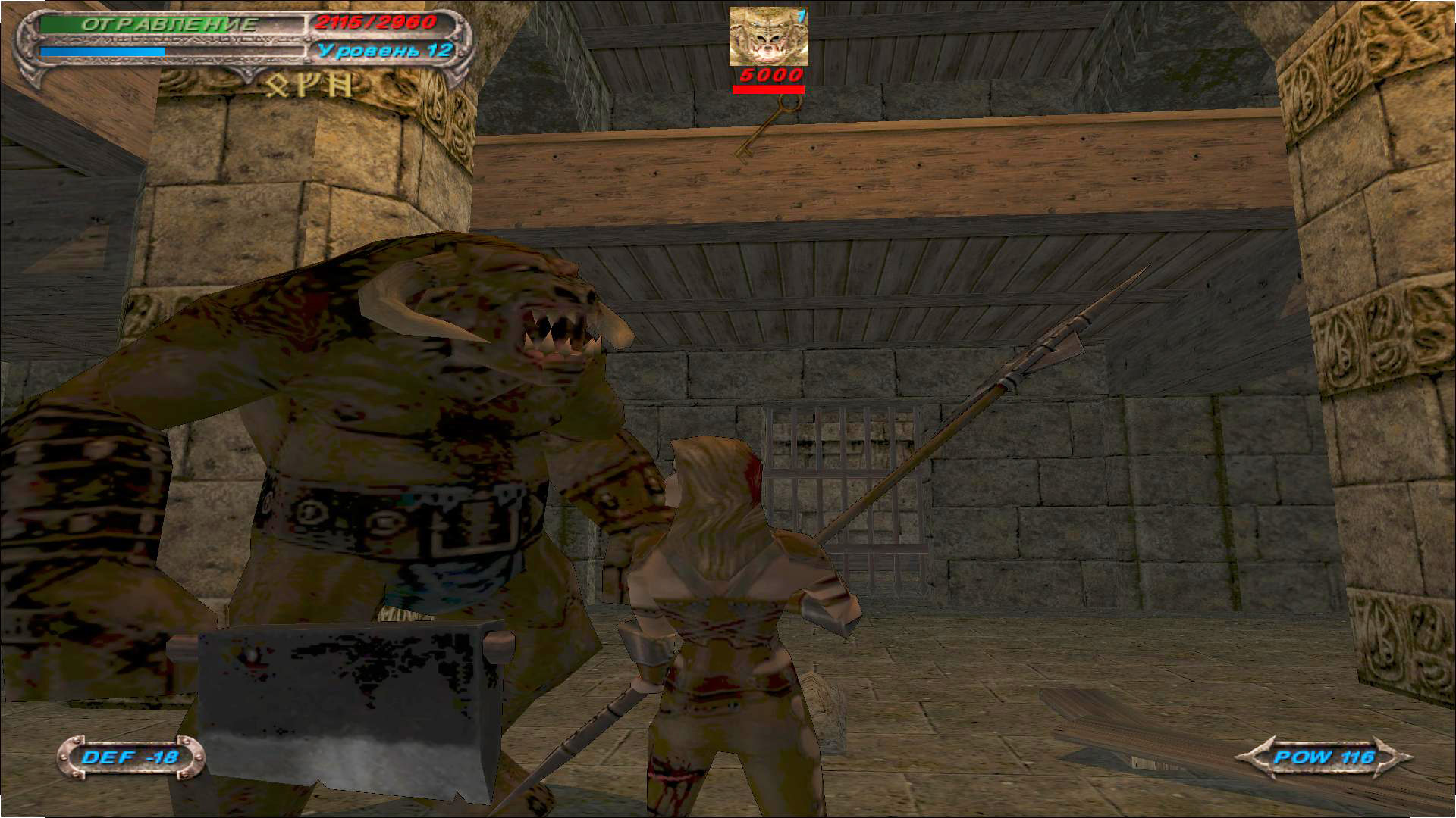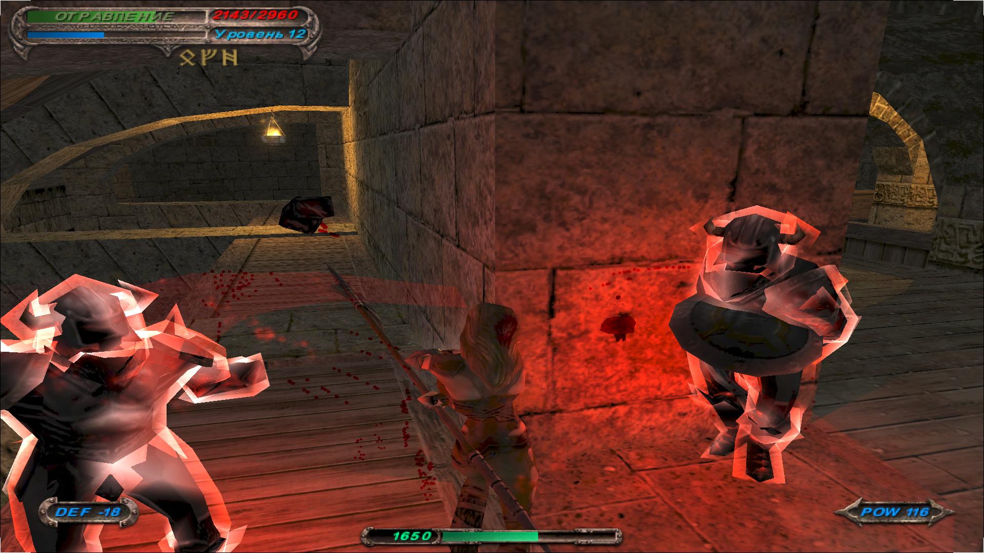 Проблема зависаний и вылетов из игры Blade of Darkness есть, она не очень так тоб критична, но есть место где играя за амазонку игра вылетает всегда. Есть два решения этой проблемы пройти это проблемное место задом: то есть открыли ключом дверь, развернулись и задом прошли в дверной проём до лесницы. Или, что проще – переключились на вид от первого лица, по умолчанию – дважды нажать клавишу +. Прошли – опять дважды нажать +. Кроме того на вкладках Оружие а также Особые есть список оружия, которые ваш герой может применять без проблем. В игре есть так же несколько экземляров оружия вообще не предназначеных для любым героем или противником, как например меч Затоичи, или секира Лезвие Света. Подобное оружие обладает повышеным уроном как для своих уровне, но имеют большие штрафы по энергии. Пользоваться ими можно только для того чтобы разнообразить геймплей. Смотрите видео как амазонка убивает мечом Затоичи босса первого уровня. Босс этот именуется Гуль – анг. Ghoul, на дальнейших уровнях они будут встречаться уже как рядовые бойцы: