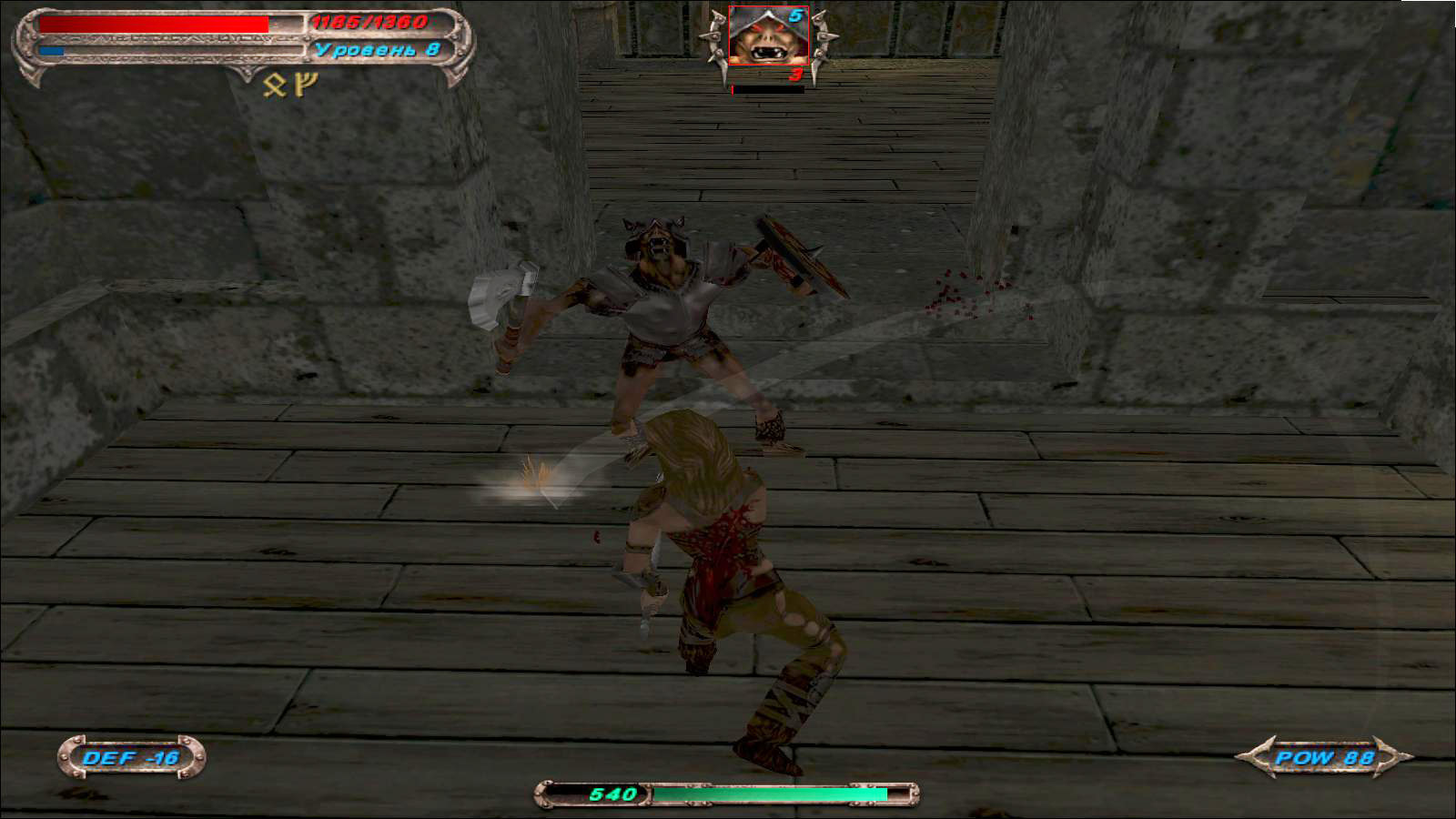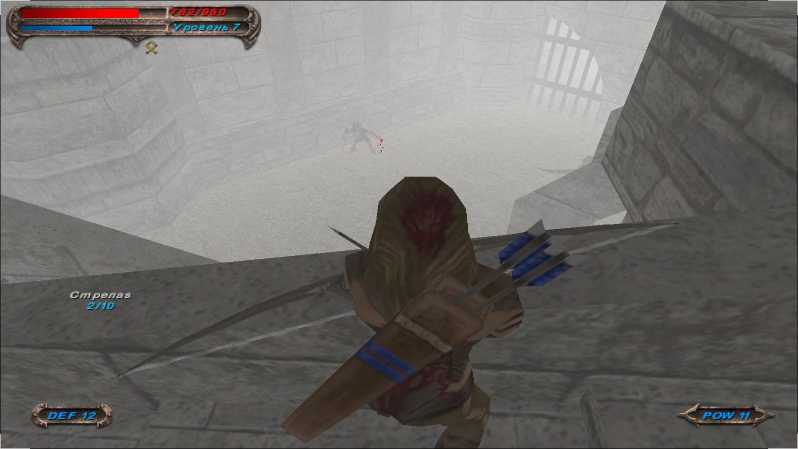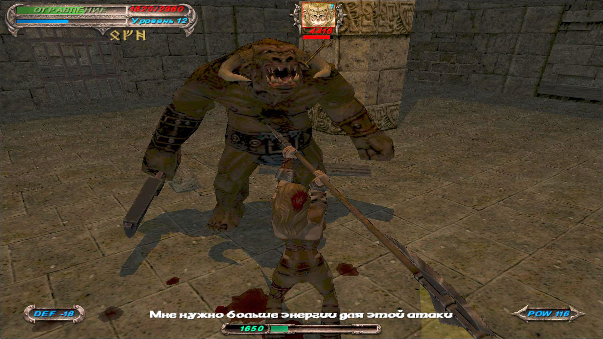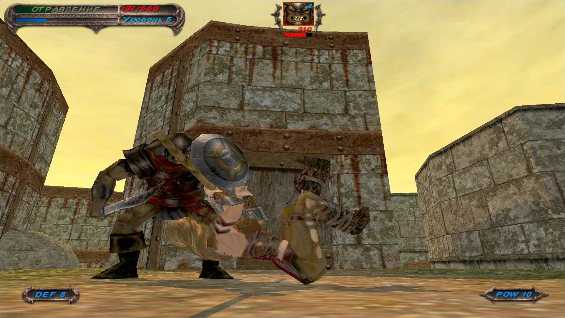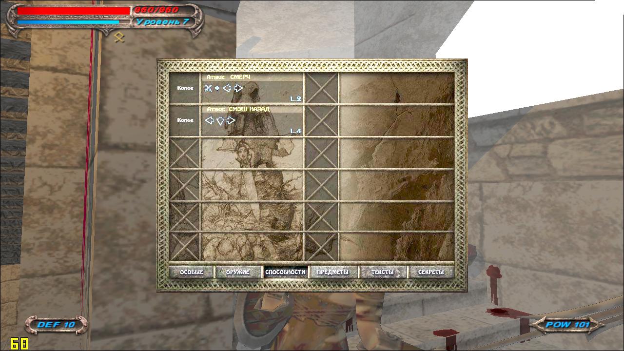 Проблема зависаний и вылетов из игры Blade of Darkness есть, она не очень так тоб критична, но есть место где играя за амазонку игра вылетает всегда. Есть два решения этой проблемы пройти это проблемное место задом: то есть открыли ключом дверь, развернулись и задом прошли в дверной проём до лесницы. Или, что проще – переключились на вид от первого лица, по умолчанию – дважды нажать клавишу +. Прошли – опять дважды нажать +. Кроме того на вкладках Оружие а также Особые есть список оружия, которые ваш герой может применять без проблем. В игре есть так же несколько экземляров оружия вообще не предназначеных для любым героем или противником, как например меч Затоичи, или секира Лезвие Света. Подобное оружие обладает повышеным уроном как для своих уровне, но имеют большие штрафы по энергии. Пользоваться ими можно только для того чтобы разнообразить геймплей. Смотрите видео как амазонка убивает мечом Затоичи босса первого уровня. Босс этот именуется Гуль – анг. Ghoul, на дальнейших уровнях они будут встречаться уже как рядовые бойцы: