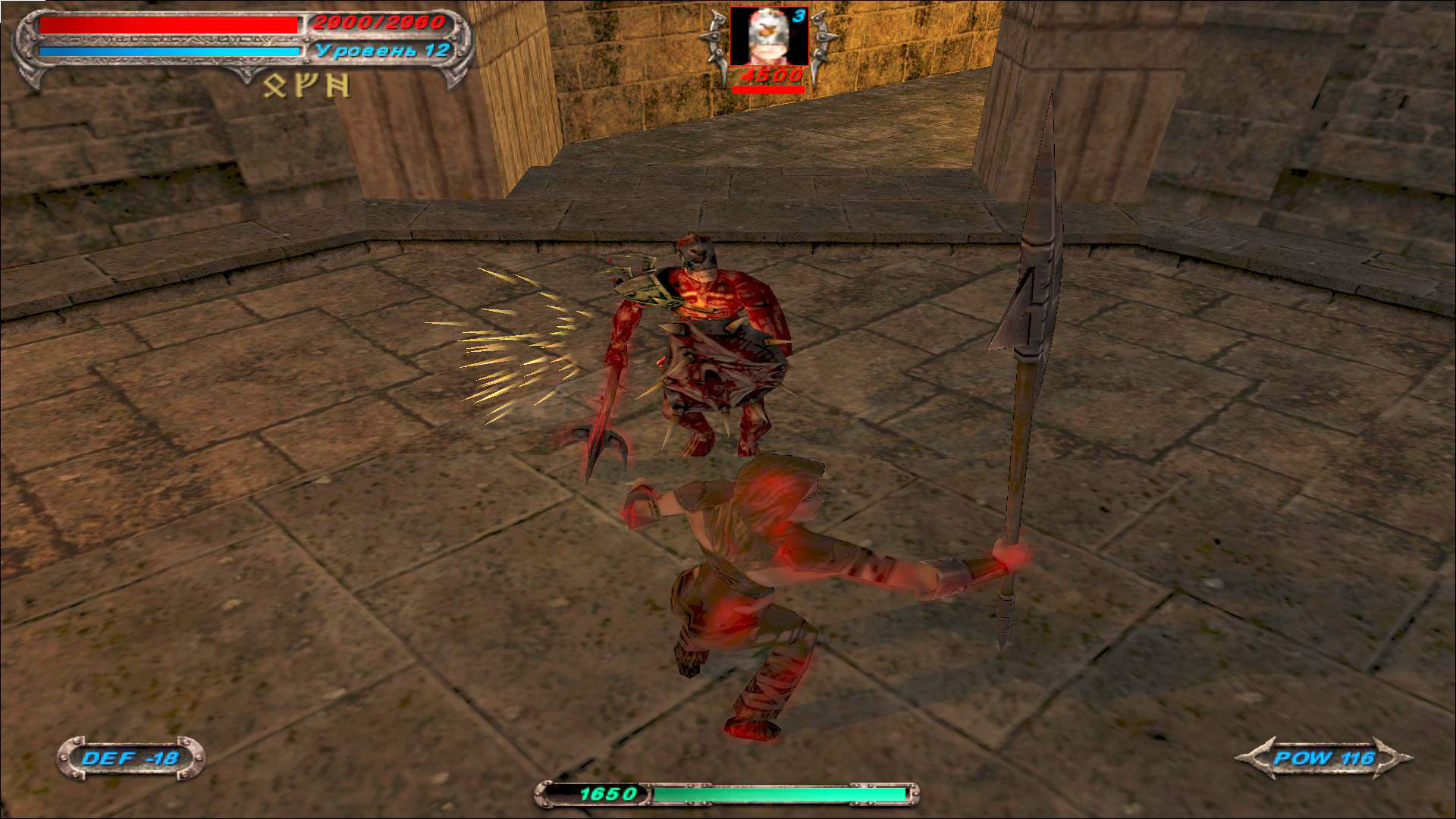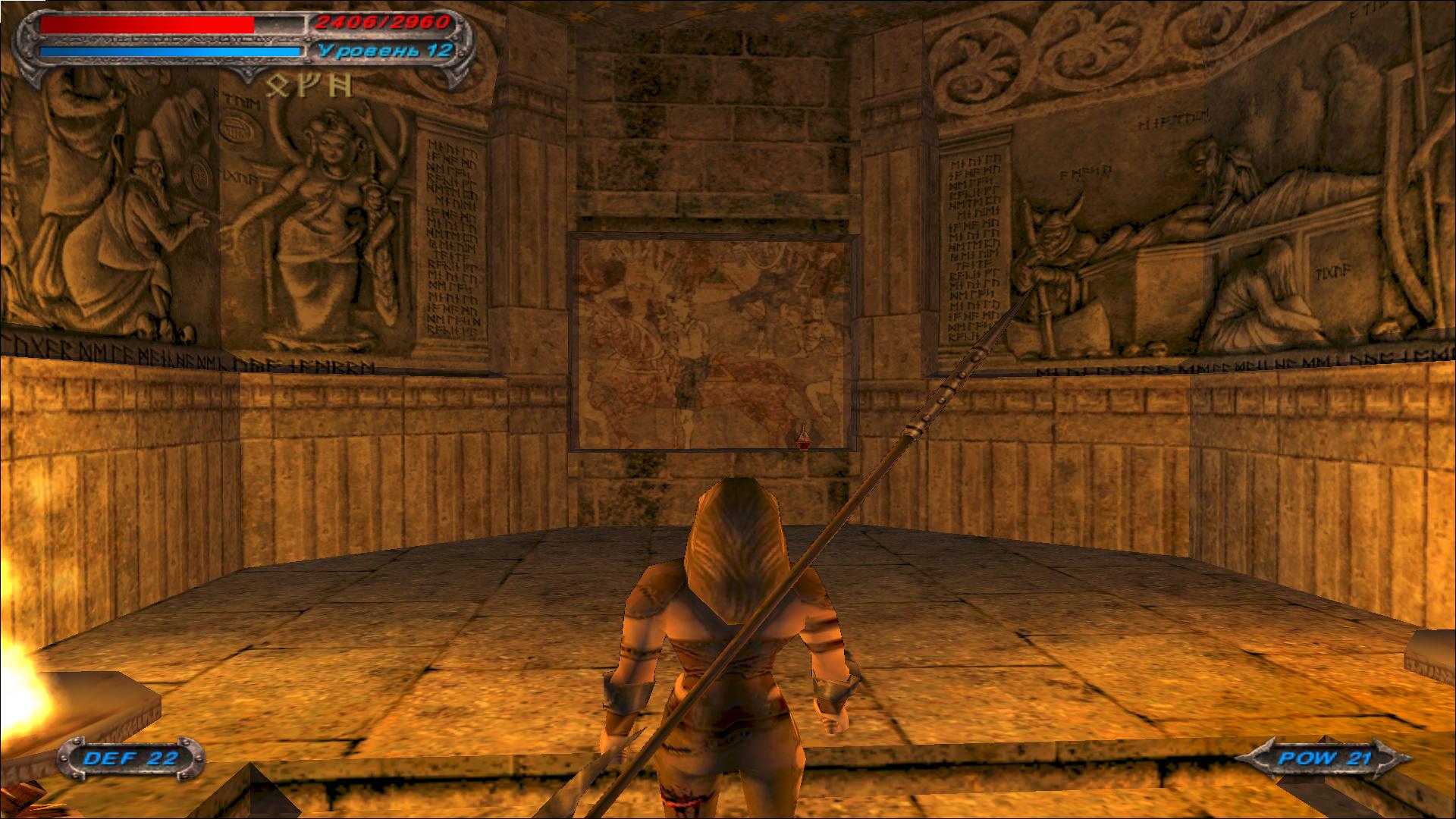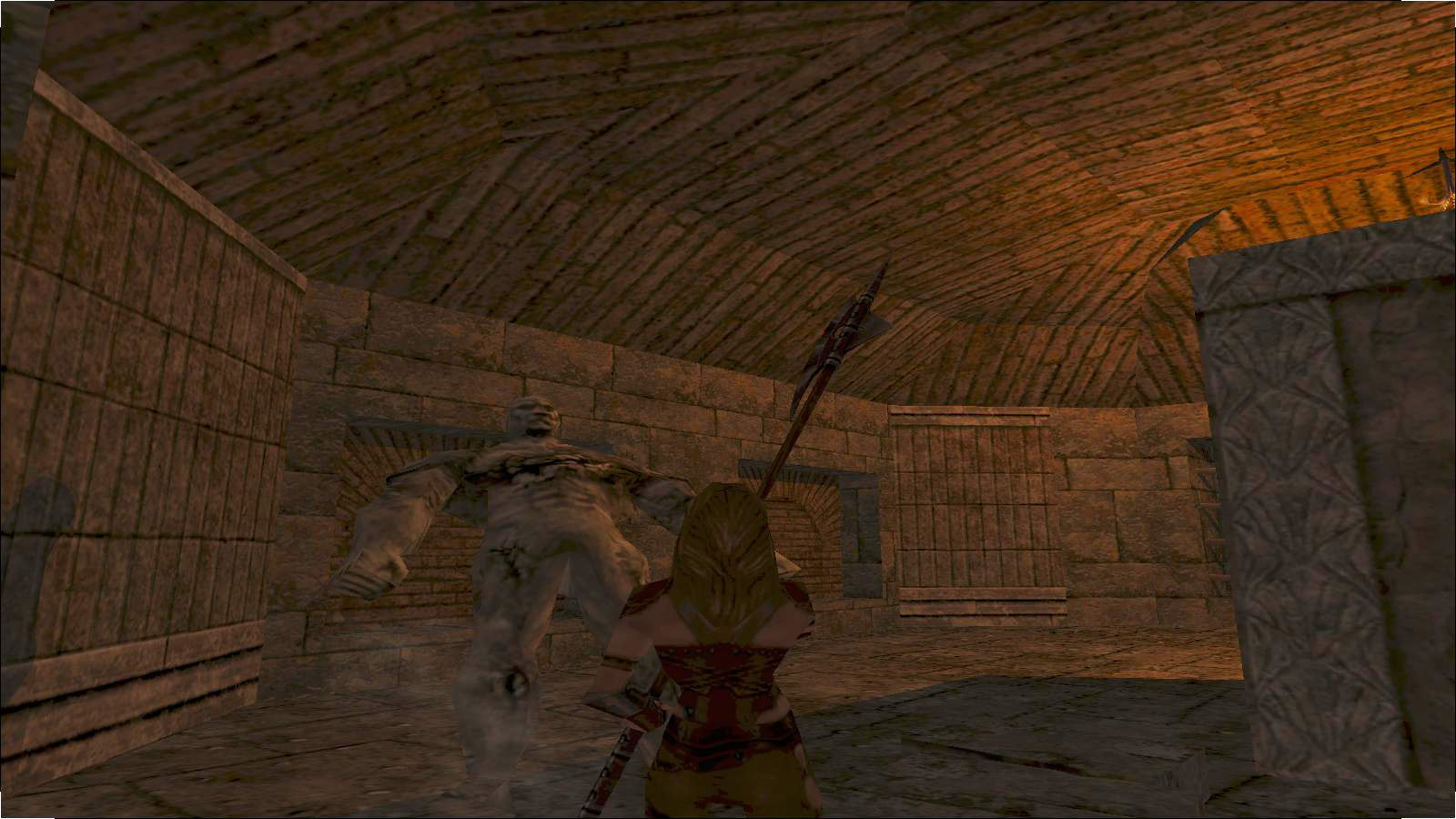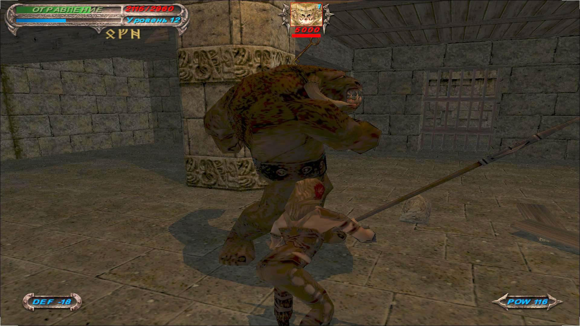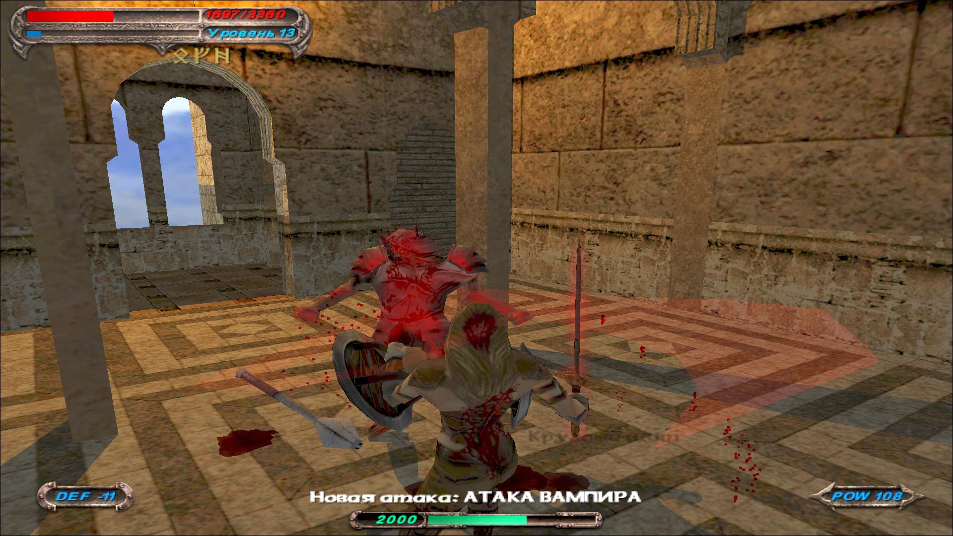 Проблема зависаний и вылетов из игры Blade of Darkness есть, она не очень так тоб критична, но есть место где играя за амазонку игра вылетает всегда. Есть два решения этой проблемы пройти это проблемное место задом: то есть открыли ключом дверь, развернулись и задом прошли в дверной проём до лесницы. Или, что проще – переключились на вид от первого лица, по умолчанию – дважды нажать клавишу +. Прошли – опять дважды нажать +. Кроме того на вкладках Оружие а также Особые есть список оружия, которые ваш герой может применять без проблем. В игре есть так же несколько экземляров оружия вообще не предназначеных для любым героем или противником, как например меч Затоичи, или секира Лезвие Света. Подобное оружие обладает повышеным уроном как для своих уровне, но имеют большие штрафы по энергии. Пользоваться ими можно только для того чтобы разнообразить геймплей. Смотрите видео как амазонка убивает мечом Затоичи босса первого уровня. Босс этот именуется Гуль – анг. Ghoul, на дальнейших уровнях они будут встречаться уже как рядовые бойцы: