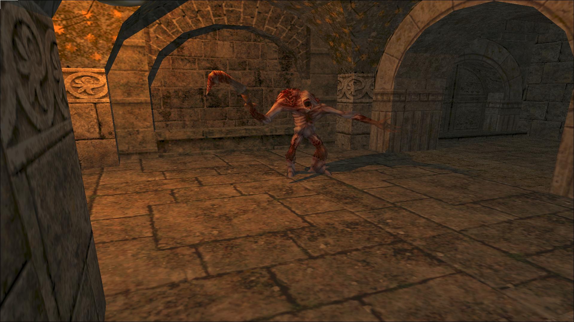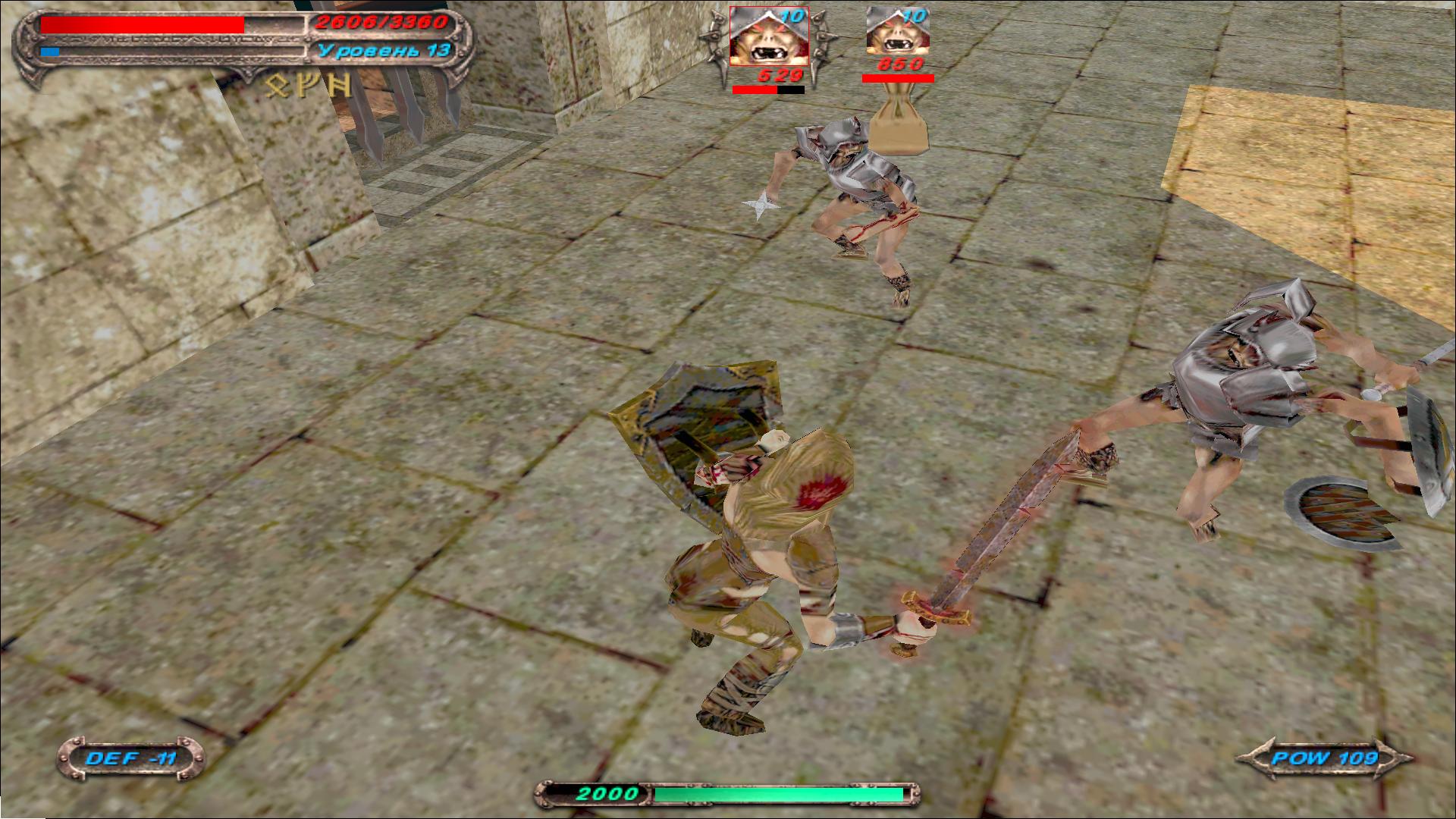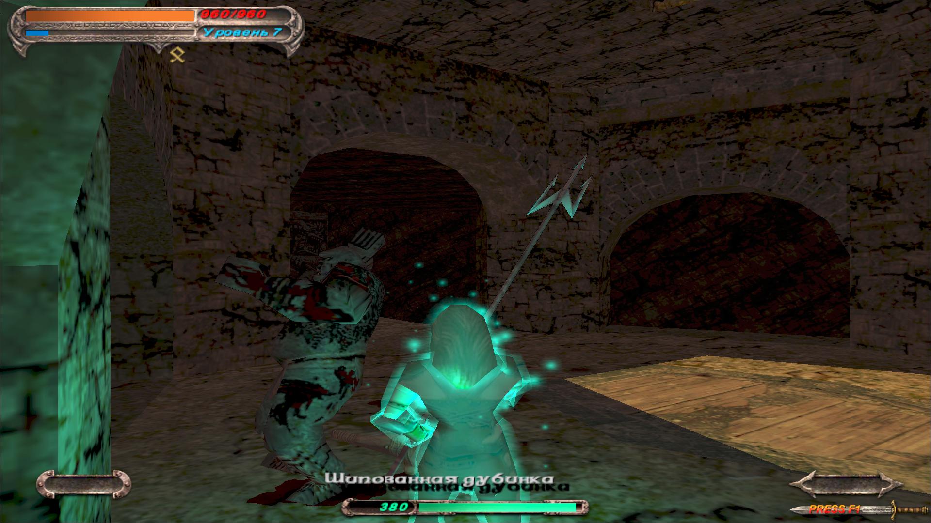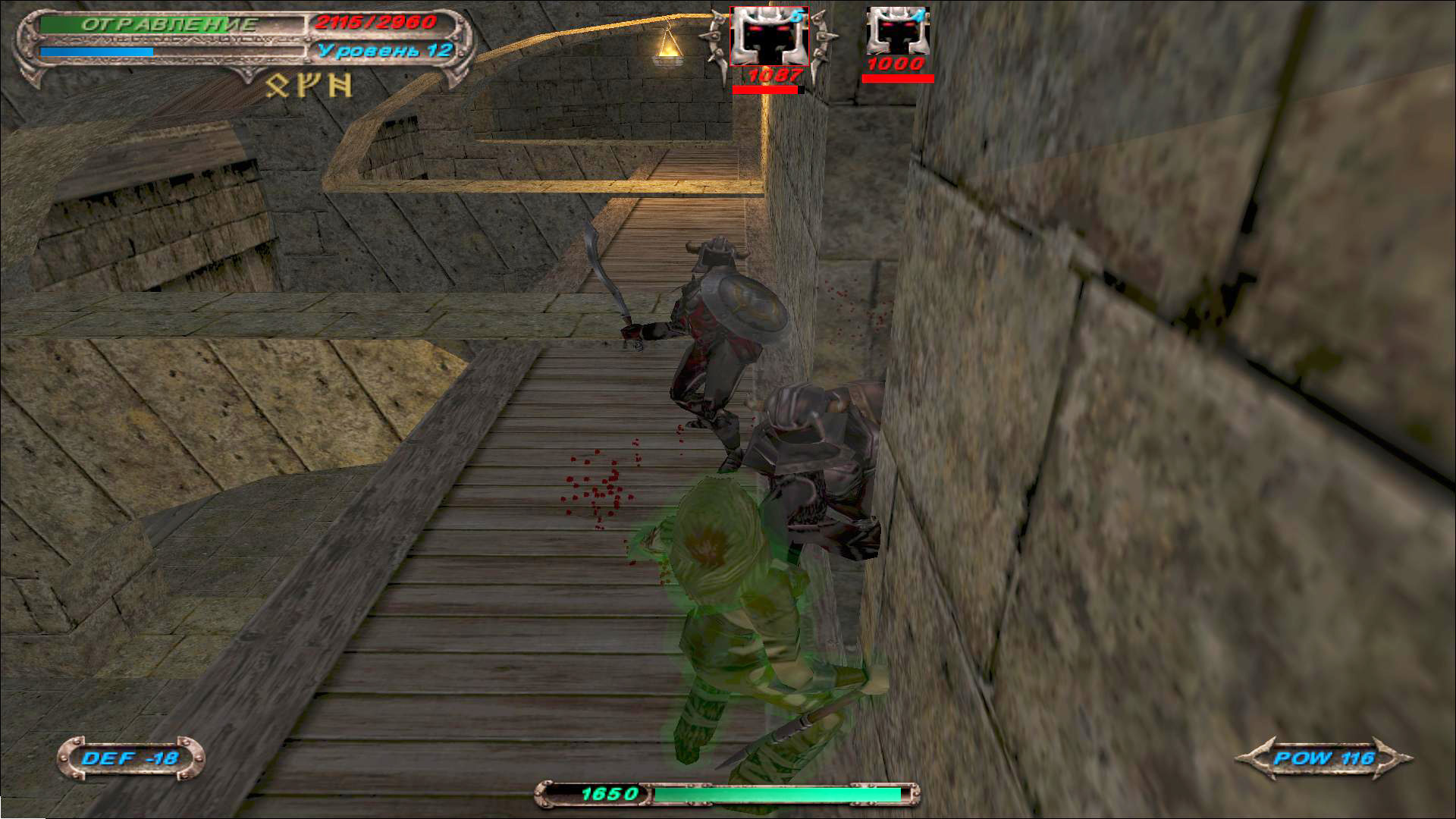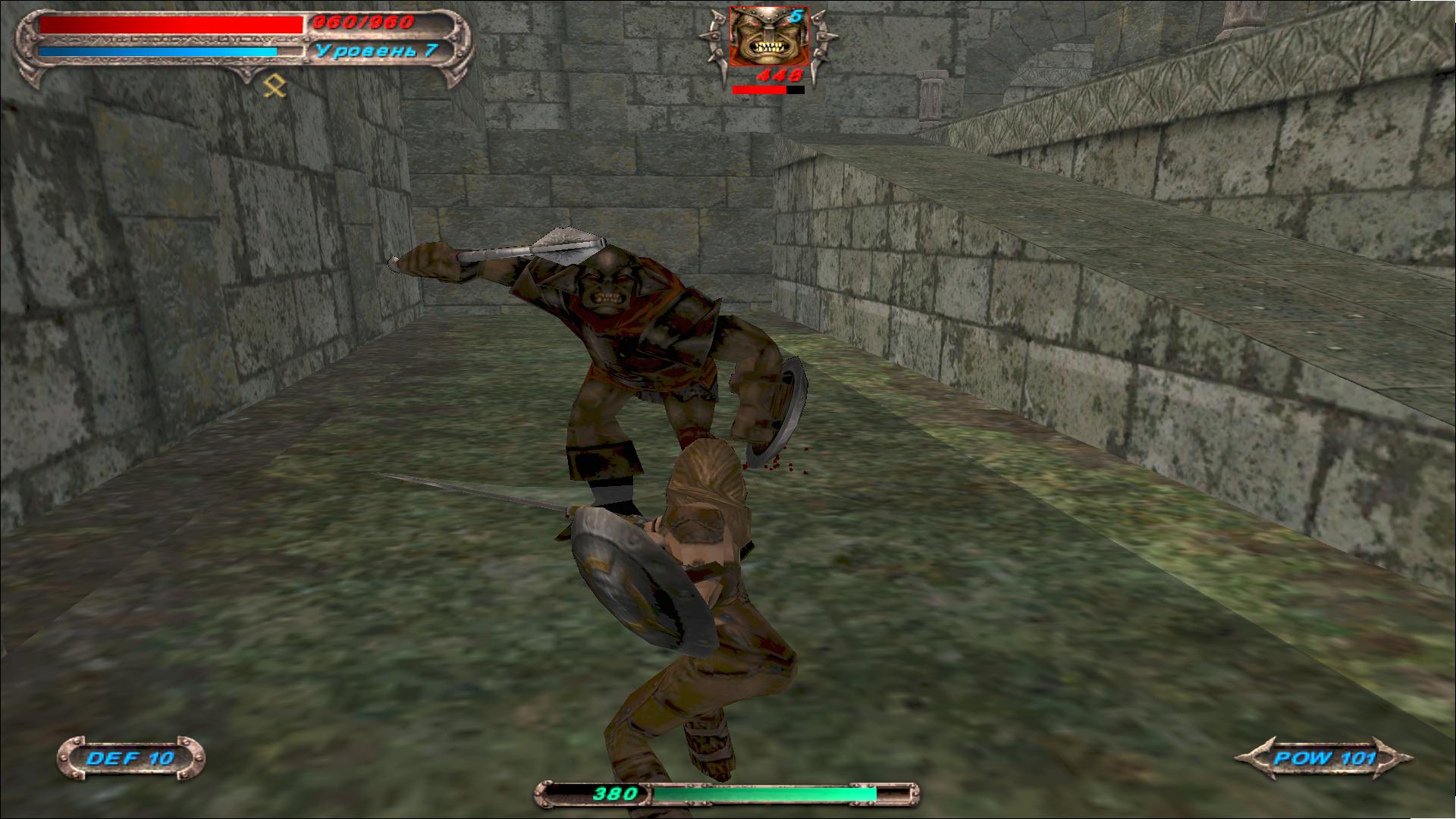 Проблема зависаний и вылетов из игры Blade of Darkness есть, она не очень так тоб критична, но есть место где играя за амазонку игра вылетает всегда. Есть два решения этой проблемы пройти это проблемное место задом: то есть открыли ключом дверь, развернулись и задом прошли в дверной проём до лесницы. Или, что проще – переключились на вид от первого лица, по умолчанию – дважды нажать клавишу +. Прошли – опять дважды нажать +. Кроме того на вкладках Оружие а также Особые есть список оружия, которые ваш герой может применять без проблем. В игре есть так же несколько экземляров оружия вообще не предназначеных для любым героем или противником, как например меч Затоичи, или секира Лезвие Света. Подобное оружие обладает повышеным уроном как для своих уровне, но имеют большие штрафы по энергии. Пользоваться ими можно только для того чтобы разнообразить геймплей. Смотрите видео как амазонка убивает мечом Затоичи босса первого уровня. Босс этот именуется Гуль – анг. Ghoul, на дальнейших уровнях они будут встречаться уже как рядовые бойцы: