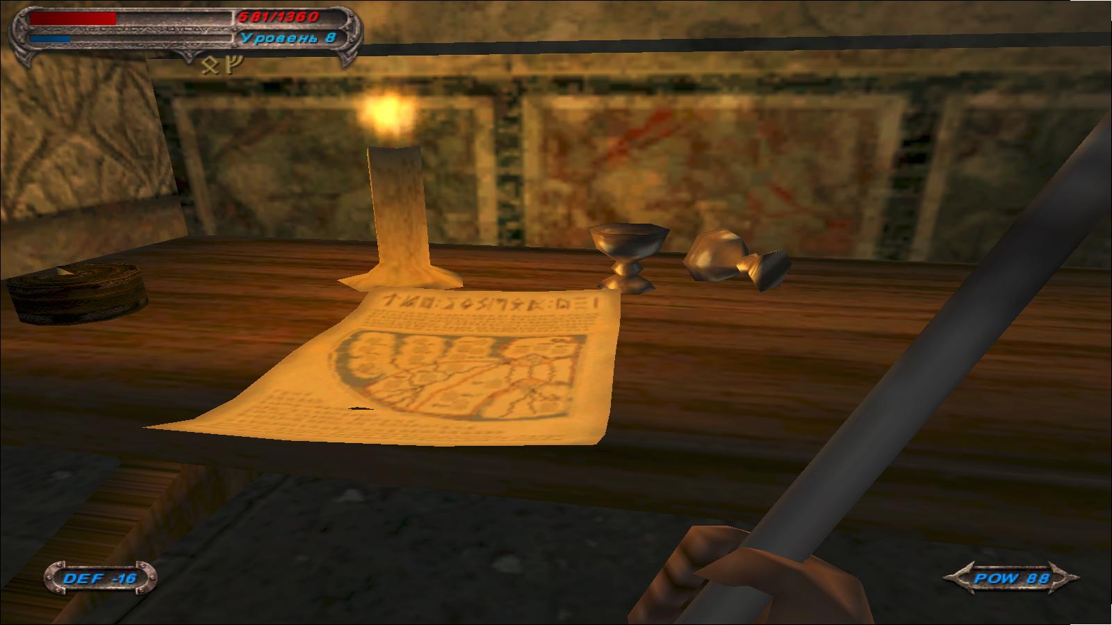 Таакие предметы как Наручи или Корона носятся в сумке инвентаря, для их использования нужно их выбрать и нажать Enter – как и с бутылками с микстурой, однако если вы за уровень не использовали Наручи или Корону, то на следующий уровень они пропадают, так что на боссах используйте смело. Самое интересное Зелье Силы, его можно с собой переносить на следующий уровень, но только одну бутылку. Усиливает героя по всем параметрам, используйте в тяжелых случаях.
