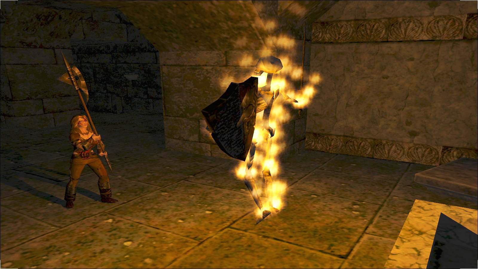 Несмотря на то что играть мне пришлось героем, являющимся симпатичной девушкой, орки и прчая нечисть и не собирались дарить цветы и идти в кино. Разчленить барышню на части – это у захватчиков гномьих шахт, рыцарских крепостей, древних храмов вообще легко. Скелеты и големы сопротивляются режущему и колющему уронам, но уязвимы для дробящего. Однако, несмотря на это большую часть игры крейсерским оружием амазонки Зои – является Алебарда. На уровне Склепы Эфиры, Алебарда находится в двух местах: в башне у ворот где появляется ваш герой и на стелаже с оружием в одном из залов. Мошь Алебарды состоит в легко прожимаемом двойном суперударе бьющем по большой площади.