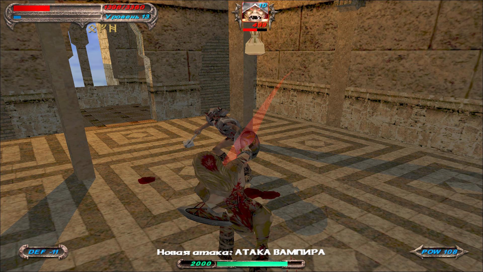 – то есть после того как одновременно нажали атаку и влево, нажимаем влево еще раз, не отпуская клавиши атака. Потренируйтесь и всё будет получаться. Двойной суперудар алебардой показан на скриншотах, он отличается красным шлейфом и многократно повышеным уроном.