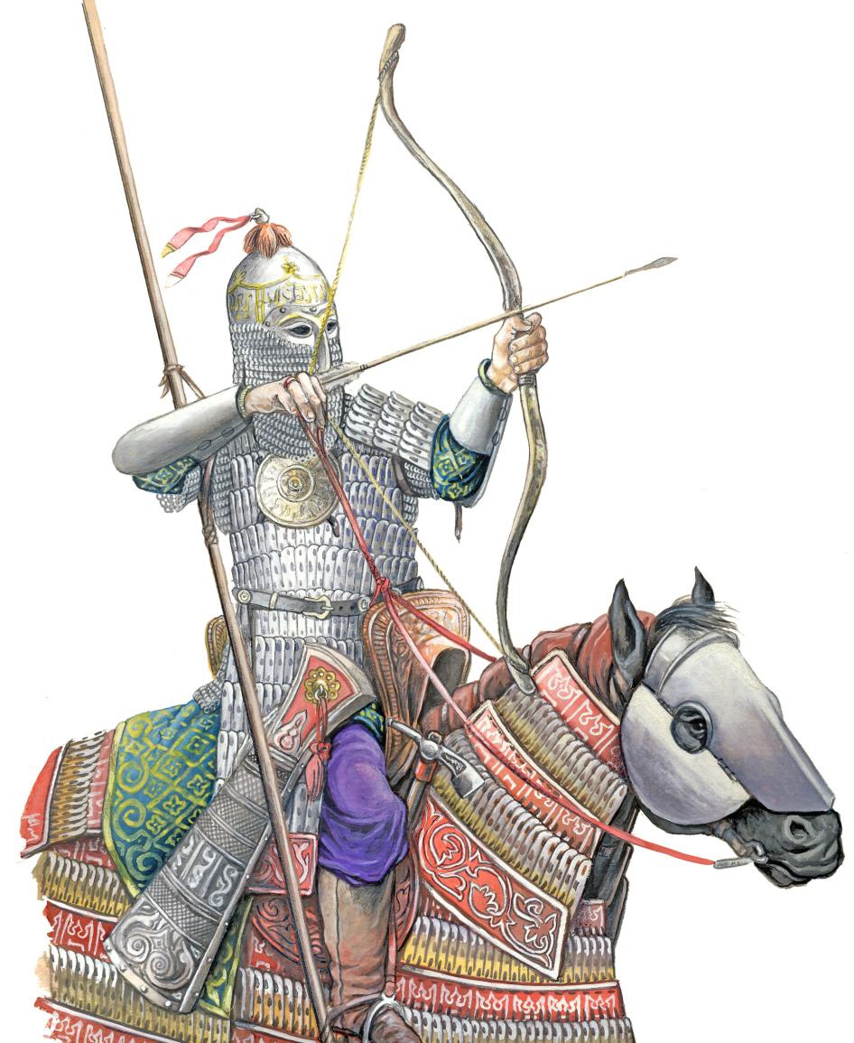 К сожалению, приведенные выше данные недостаточны для точного определения генезиса «крутобоких» шлемов. Однако из всего сказанного можно сделать вывод о практически полном отсутствии обоснованных доказательств теории о русском происхождении куполовидных шлемов, поскольку экземпляры, найденные на территории древнерусских городов, происходят, как правило, из горелого слоя, связанного с монгольским разорением. Конечно, в нашем распоряжении есть упоминание во французской героической поэме «Рено де Монтобан» о «добром хауберке» (кольчуге), сделанном на Руси123, а также раскопано пять ремесленных мастерских, производивших оружие (в Новгороде, Воине, Гомеле, Полоцке, Можайске), но эти данные об оружейном производстве на Руси никак не свидетельствуют о русском влиянии на оружейные традиции кочевников Золотой Орды.