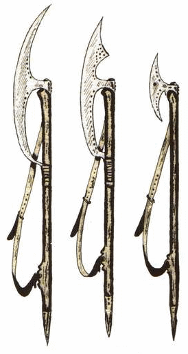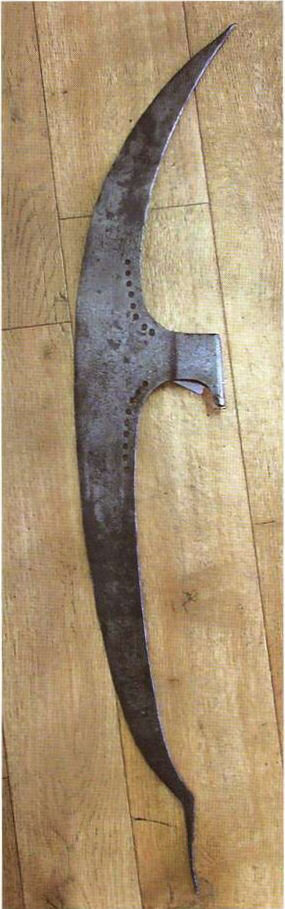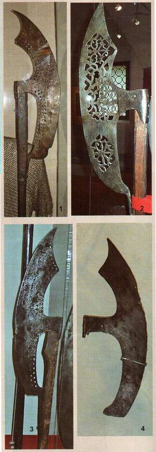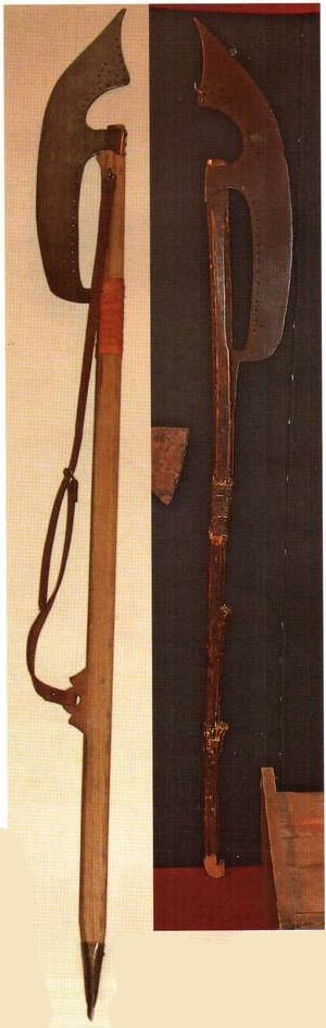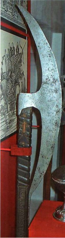 1з-2. Лезвие имеет вид широкого и очень длинного «полулуния» (размер достигает 1.5 м), приварено к стандартному бердыш-ному обуху, верхняя греть оттянута за обух. По всей длине лезвия, вдоль тупья. пробиты ряды круглых отверстий. Экспонируется в Музее «Новодевичий монастырь».