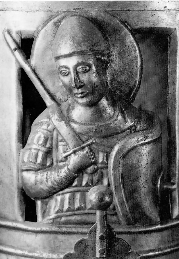 (W3) бронзовая дверь южного портала соборе Гнезно (Südportals des Gnesener Doms), 1170-1190. Щиты маленькие, без усиления краев, на одном щите едва заметен умбон.