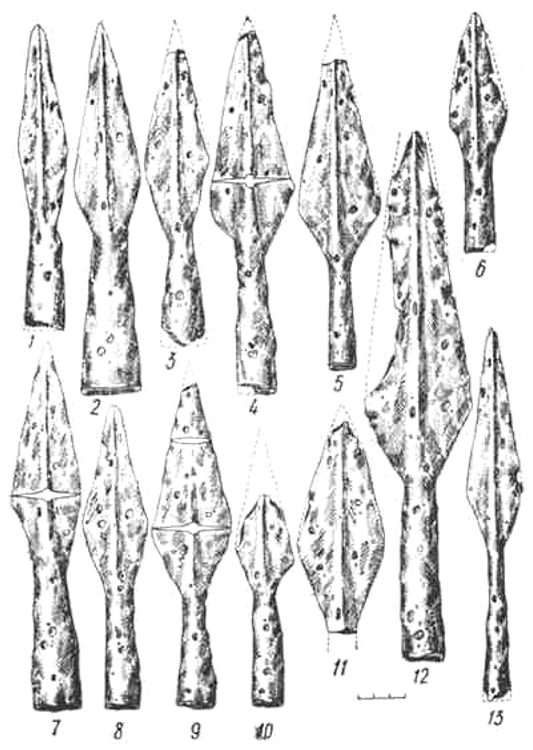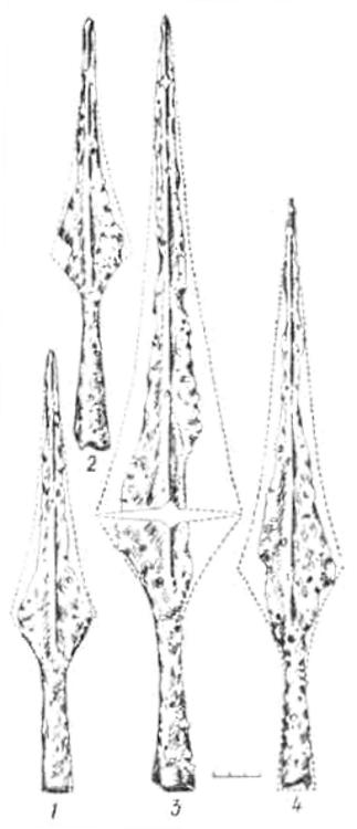 Инвентарь погр. № 22 могильника Шаркай (Шилальский р-н) Наконечники копий варианта ІБ: