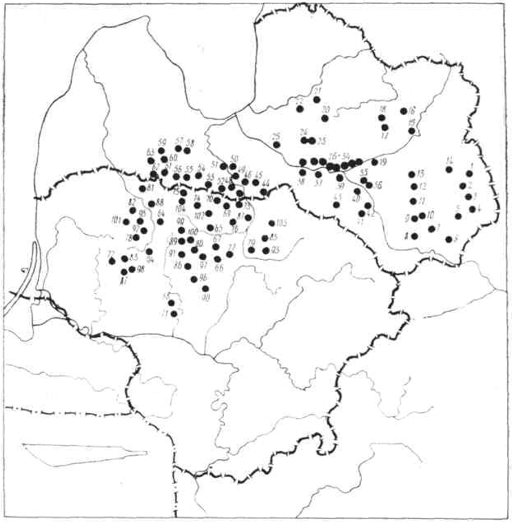 Публикации об обнаруженных в Литве мечах I тысячелетия н. э. начали появляться во второй половине прошлого столетия. Первым мечи упомянул немецкий археолог О. Тишлер. Он писал, что в погребениях V—VIII вв. грунтового могильника Аукшткемяй однолезвийные мечи обнаруживаются вместе с арбалетовиднымн фибулами, перстнями, топорами и другими вещами материальной культуры (199, с. 121-122, 134). Несколько десятков мечей, обнаруженных случайно и в погребениях, было опубликовано еще до Великой Отечественной войны (178, табл. 1 :4; 72, табл. X: 10, 21; 73, рис. 242 : ф; 186, рис. 12; 139, с. 56; 160, с. 144; 166, рис. 44, 45; 79, с. 22). Мы должны в первую очередь упомянуть эти публикации, потому что они не утратили значения до сих пор. Большинство археологических коллекций, хранившихся в фондах разных музеев, во время войны не уцелели. Безвозвратно утрачен материал таких широко исследованных могильников Клайпедского края, как например, Аукшткемяй (Клайпедский р-н), Барвай, Вежайчяй (Шилутский р-н), хранившийся в музеях Восточной Пруссии в Кёнигсберге, Инстенбурге и других городах. Много случайных находок из могильников этой части Литвы попало в разные музеи Берлина. В послевоенные годы, при более интенсивном исследовании погребальных памятников, найдено больше мечей и мест их нахождения теперь известно больше (карта XVI).