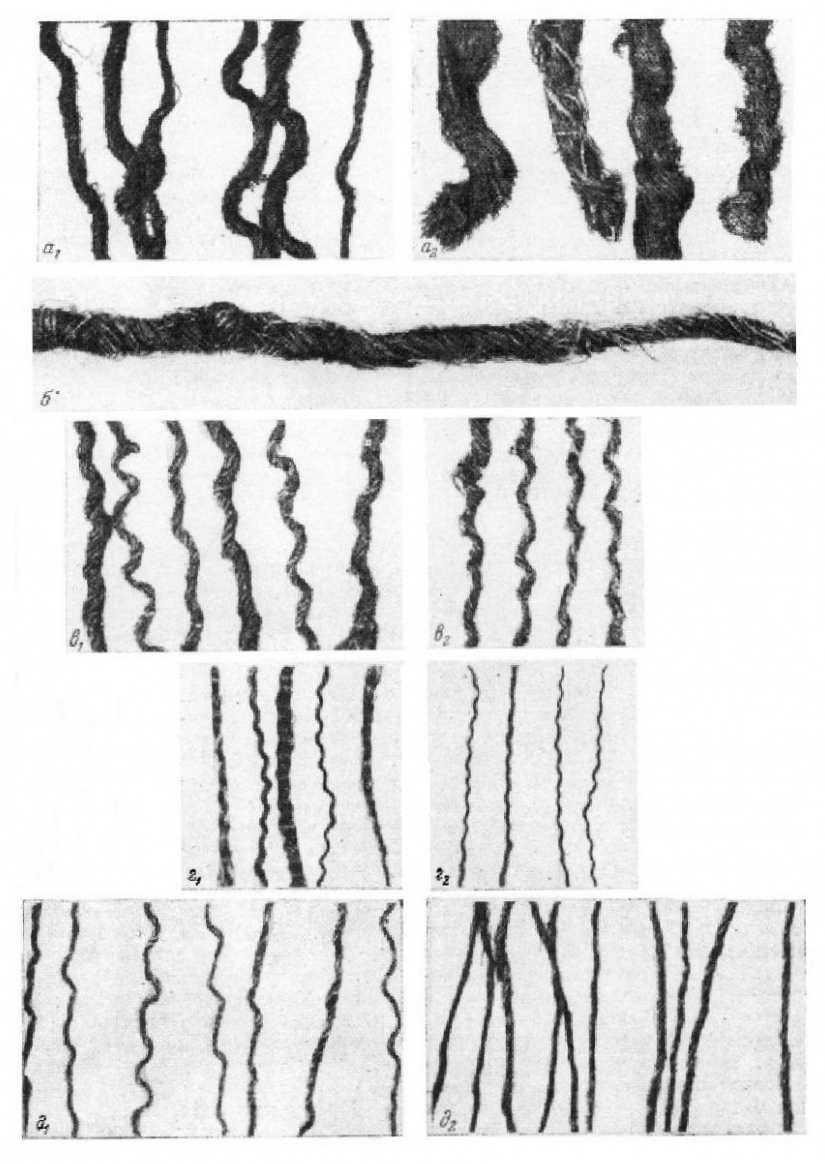 Какой из этих способов употреблялся в средневековой Руси, с помощью исследования под микроскопом установить нельзя. Однако надо отметить тот факт, что в исследованном материале местного происхождения не обнаружено волосяных луковиц. Это, по-видимому, говорит о том, что руно состригалось или срезалось.