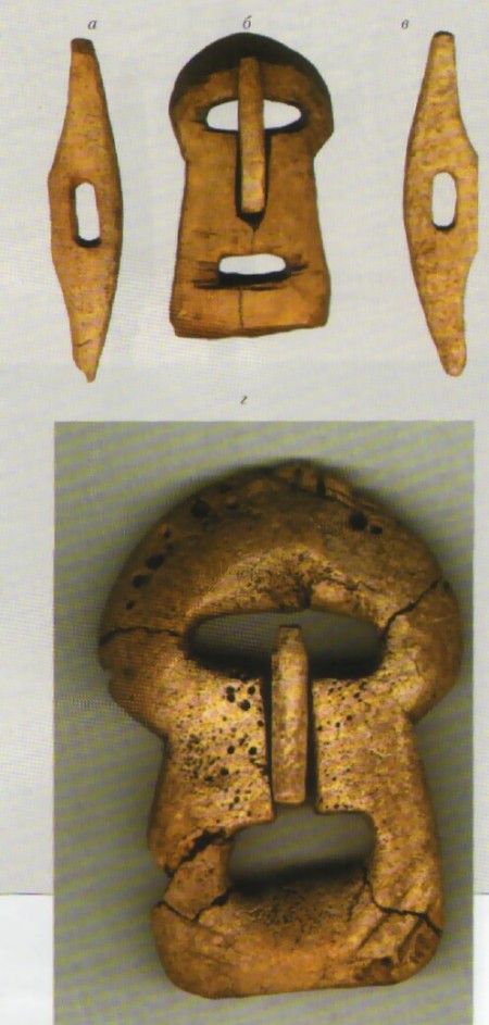 Копье у тюрков имело сакральный смысл. Следы подобного отношения к этому оружию сохранились в обрядовой практике тюркоязычного населения, где копью отводилась особая роль. Так, у казахов и киргизов еще в начале прошлого века существовал обычай, согласно которому после смерти мужчины в жилище устанавливался специальный знак — «туу», который представлял собой копье умершего с траурным флажком — «жилек» — под наконечником. Основание копья устанавливалось внутри кибитки, а древко с наконечником пропускалось в дыру, проделанную в кошме. Во время перекочевки копье «туу» везли впереди каравана. Туу был временным заместителем усопшего, то есть являлся одушевленным предметом, обладающим некими жизненными силами. Участь «туу» была почти всегда одинакова. Через год, когда душа умершего окончательно должна была покинуть средний мир, устраивались поминки, на которых проводились различные состязания: скачки, конные копейные бои, стрельба на скаку из лука и т. д. Победителе, завоевавший главный приз, спешивался, вырывал копье и разламывал его, чтобы освободить заключенную в нем душу. Тому, кто сломал копье, давали подарок, а в ряде случаев, например, у казахов, сохранивших в исполнении этого обряда больше архаических черт, "переломивший копье" должен был стать мужем вдовы.  Наконечники копий VIII - X вв. Ачинско-Мариинская лесостепь а-е. Роговым пряжки таких характерных форм стили легки узнаваемым элементом материальной культуры древних тюрков. Эти крупные изделия скрепляли подпруги седел верховых коней (б, г). Аналогичные предметы меньших размеров, также вырезанные из рога или отлитые из бронзы, служили застежками пояса. Застежки конских пут "цурки" (а, в), форма которых мало изменилась за минувшие тысячу двести лет, в древнетюркское время вырезали преимущественно из дерева, хотя для этой цели мог использоваться и рог. V —VIII ни. Могильник Усть-Чоба. Горный Алтай. Среднее течение р. Катунь. МА ИАЭТ СО РАН Юрта - традиционное жилище кочевых и полукочевых народов. И в наши дни на высокогорных пастбищах Алтая можно встретить такие переносные сооружения, покрытые войлоком, шкурами и брезентом, в которых живут пастухи, когда перегоняют сюда свои стада. Сейчас они используются только как летнее жилье, но в прошлом это был основной тип жилища. которым пользовались тюркоязычные предки современных алтайцев