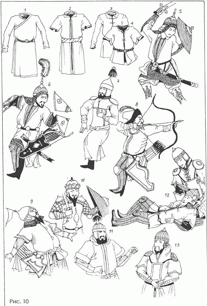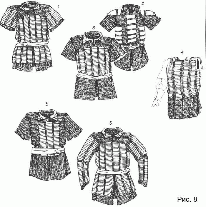 Виды покроя и изображения «наддоспешных» халатов и панцирей из органических материалов.