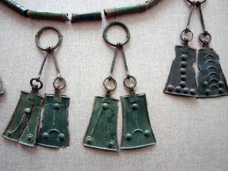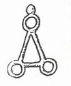 Во время раскопок Даргавсского катакомбного могильника среди вещей погребальных комплексов попадались бронзовые предметы неясного назначения — в виде треугольника с колечками и «рожками» на вершине углов. Первое время мы склонны были считать их разновидностью подвесок, украшений. Подобные предметы ранее были отмечены нами в ходе подготовки к печати материалов Тарского катакомбного могильника [1, 259-314]. Отмечаются они и в капитальном труде П.С. Уваровой «Материалы по археологии Кавказа» [2]. Упоминает их и А.Хайнрих в своей статье, вошедшей в третий том «Аланики» [3, 184-258]. И уже в сводной работе В.Б.Ковалевской, в иллюстративной части, есть рисунки этих предметов, происходящих из Чир-Юрта.