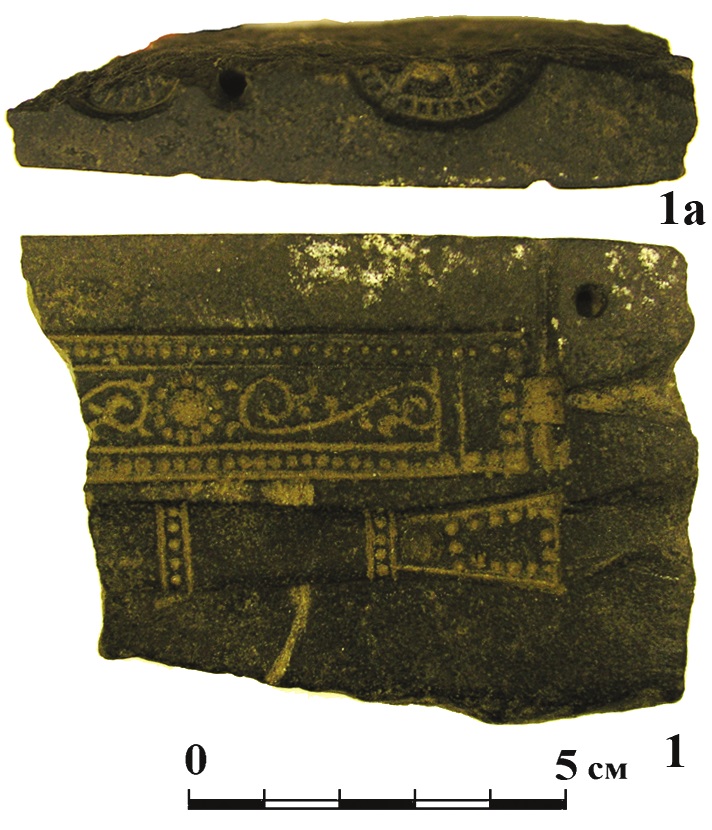 Каменная литейная форма с Муромского городка (фото). 1 - лицевая сторона, 1а - боковая сторона Меднолитейное производство в Волжской Болгарии достигло высокого уровня развития в XI–XII вв. При раскопках крупных городов и поселений постоянно встречаются материальные следы этого направления металлообрабатывающей отрасли булгарского ремесла. Показательными для характеристики особенностей меднолитейного дела являются находки литейных форм. Наиболее подробные обзоры находок литейных форм на памятниках Волжской Болгарии представлены в работах С.В. Кузьминых по Биляру (Кузьминых, 1985, с. 84–103) и Г.Ф. Поляковой по Болгару (Полякова, 1996, с. 154–268).