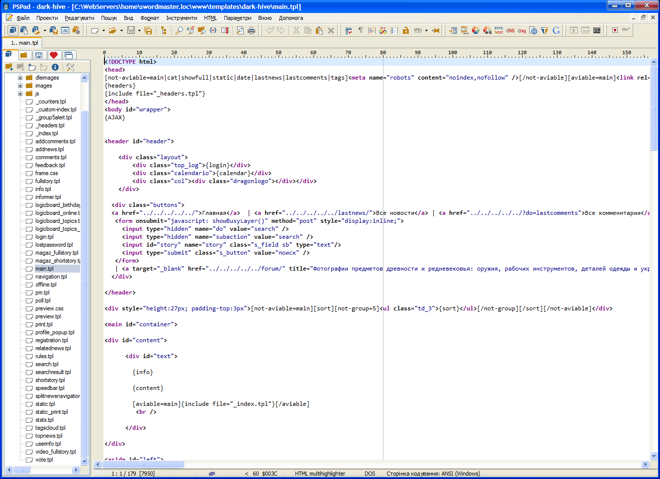 Этот редактор я использовал для составления шаблона для этого сайта, его же использую для правки и модернизации шаблона. В этом возникает необходимость при обновлении движка или при добавлении кнопки поисковой системы или рейтинговой службы.