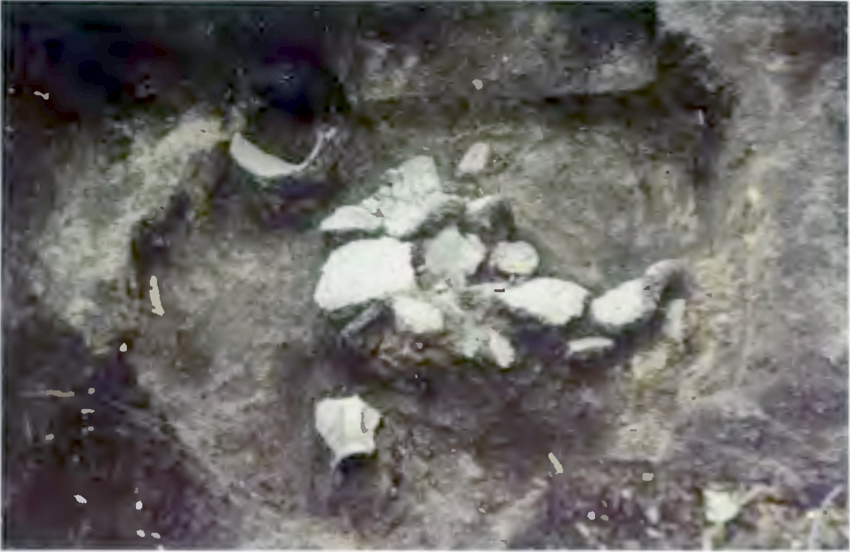 Погребение 189. Находилась в квадрате А-2. Произведено в овальной яме с узкими заплечиками вдоль длинных сторон, ориентированной длинной осью по линии СЗ-ЮВ (рис.58). Камера имела вытянутоовальную форму. Кости ребенка сохранились плохо. Судя по положению остатков скелета видно, что погребенный лежал лицом к югу. Инвентаря нет.